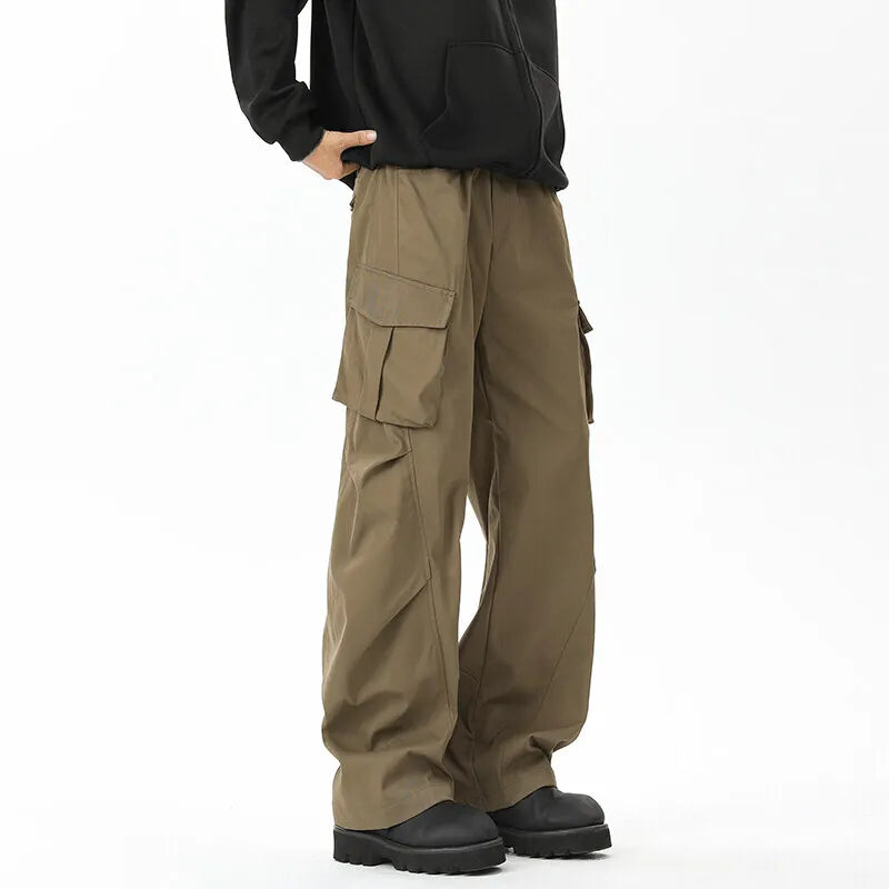 HEARUJOY - Pocket Casual Pants Men Retro Black Cargo Pants Men Japanese Streetwear Hip-hop Loose Straight Pants Mens Vintage Trousers
