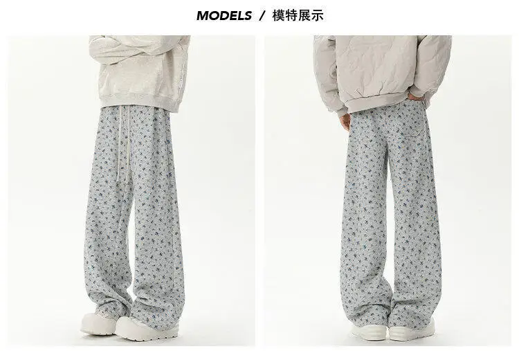 HEARUJOY - Printed Casual Pants Men Oversized Wide Leg Pants Men Sweatpants Streetwear Hip-hop Loose Straight Pants Mens Joggers Trousers