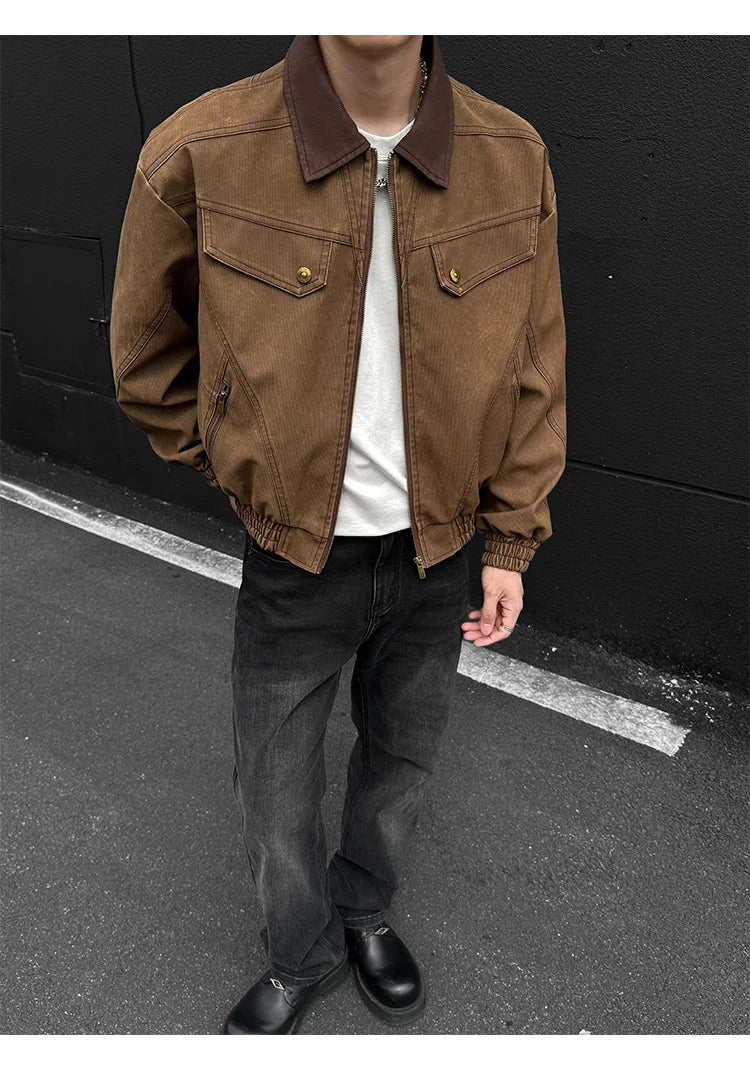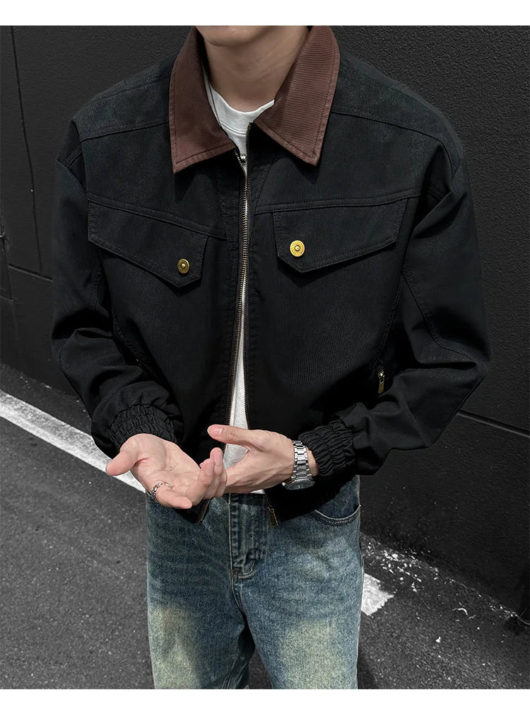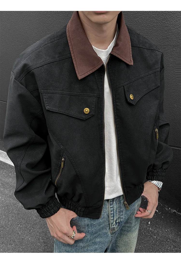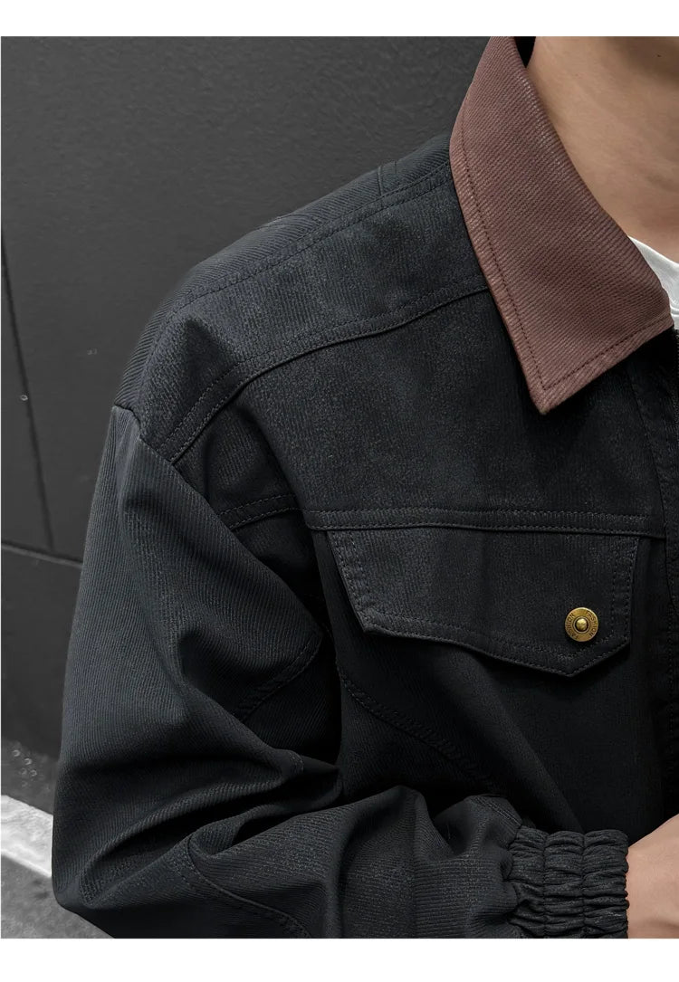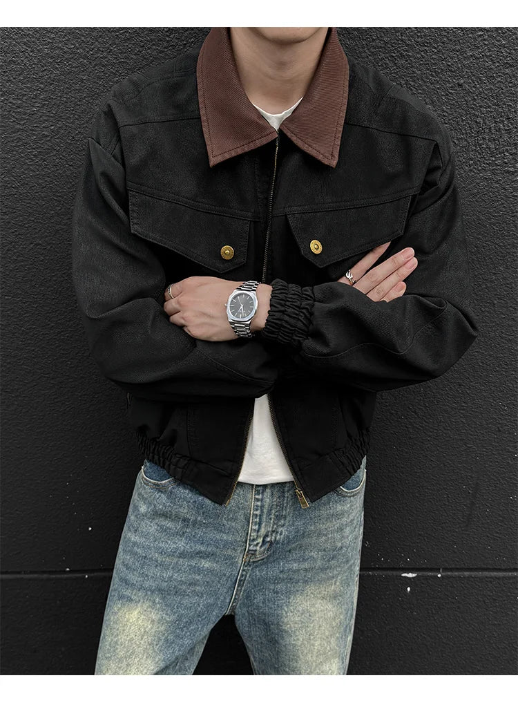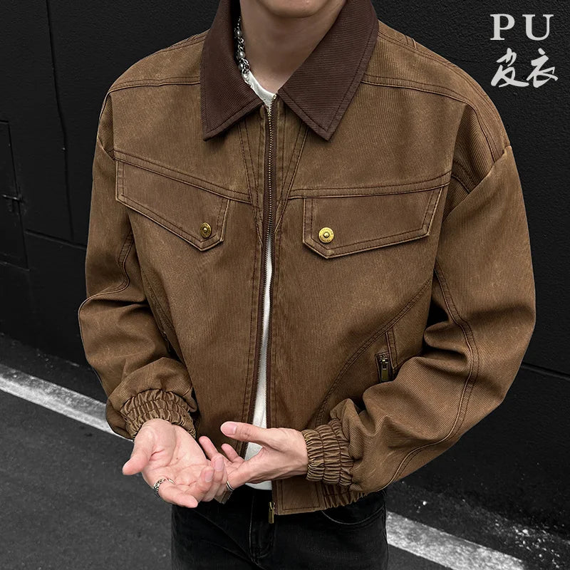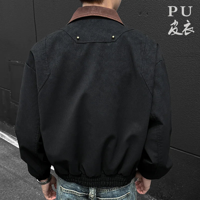 HEARUJOY - PU Jacket men 2025 autumn winter new faux leather men jacket contrast collar design short motorcycle windproof fashion trendy