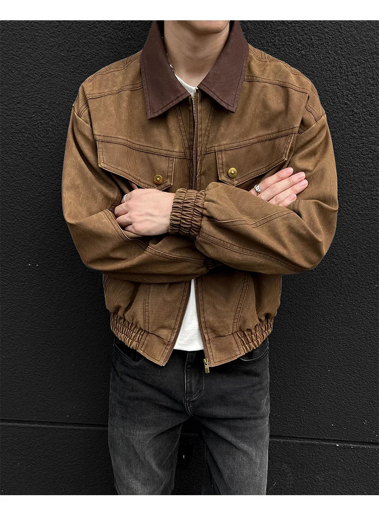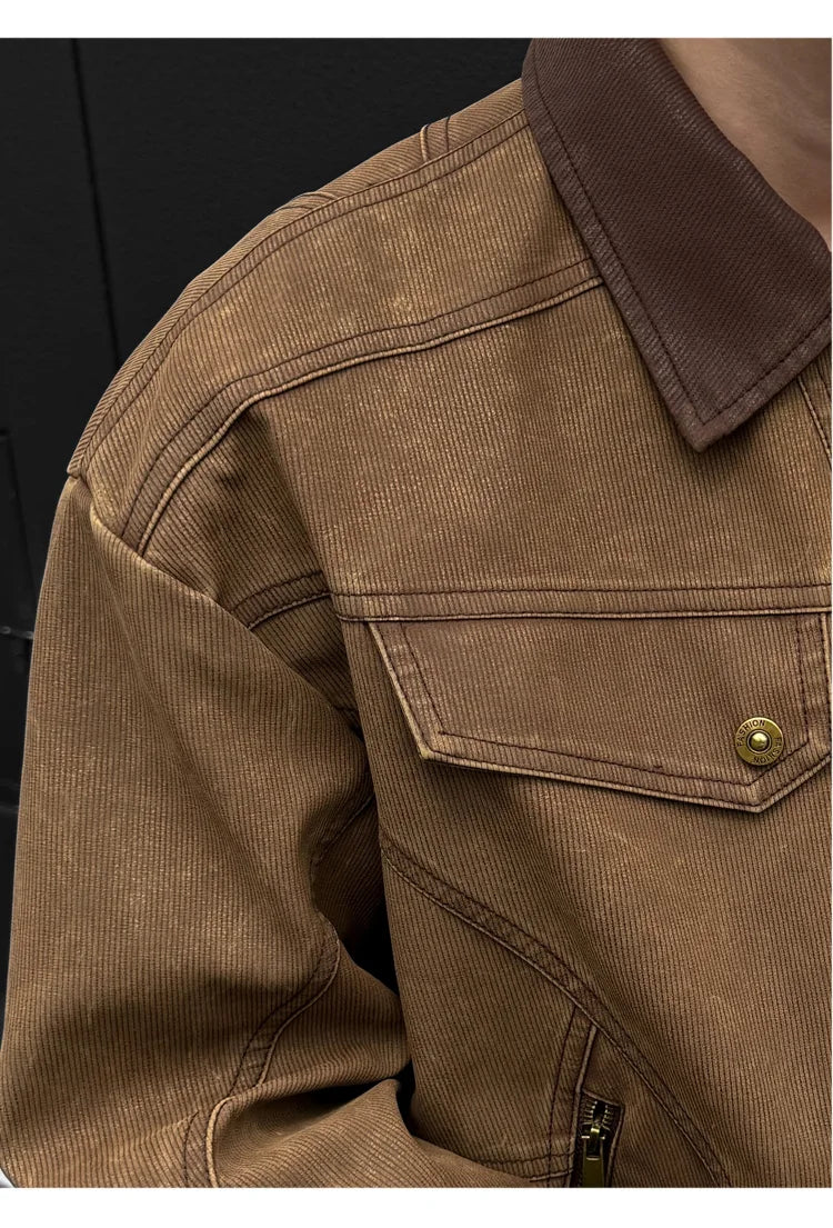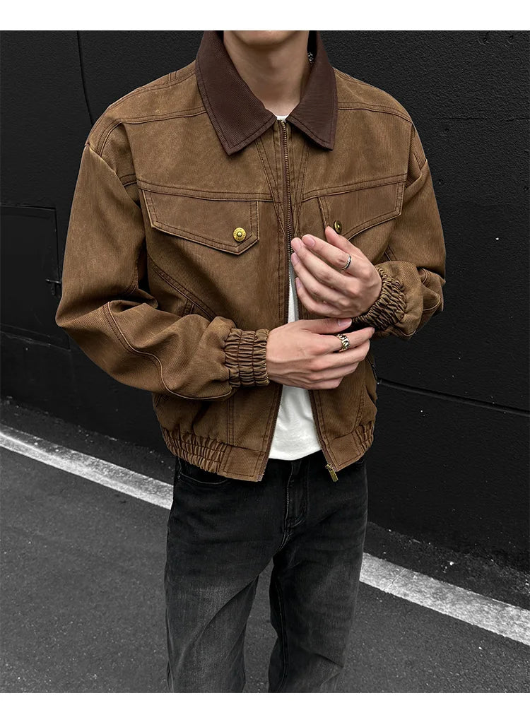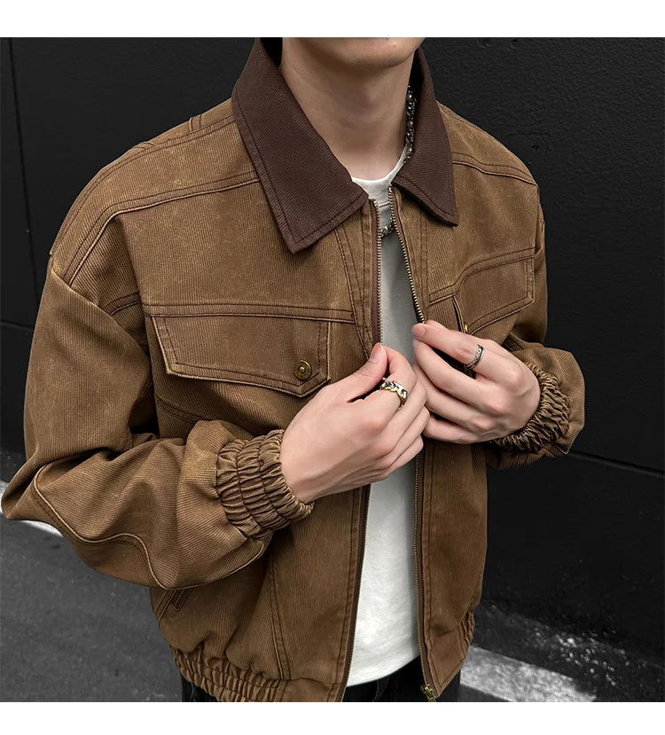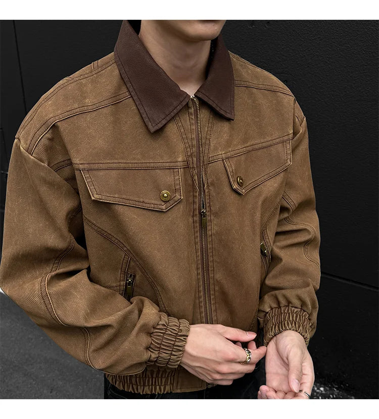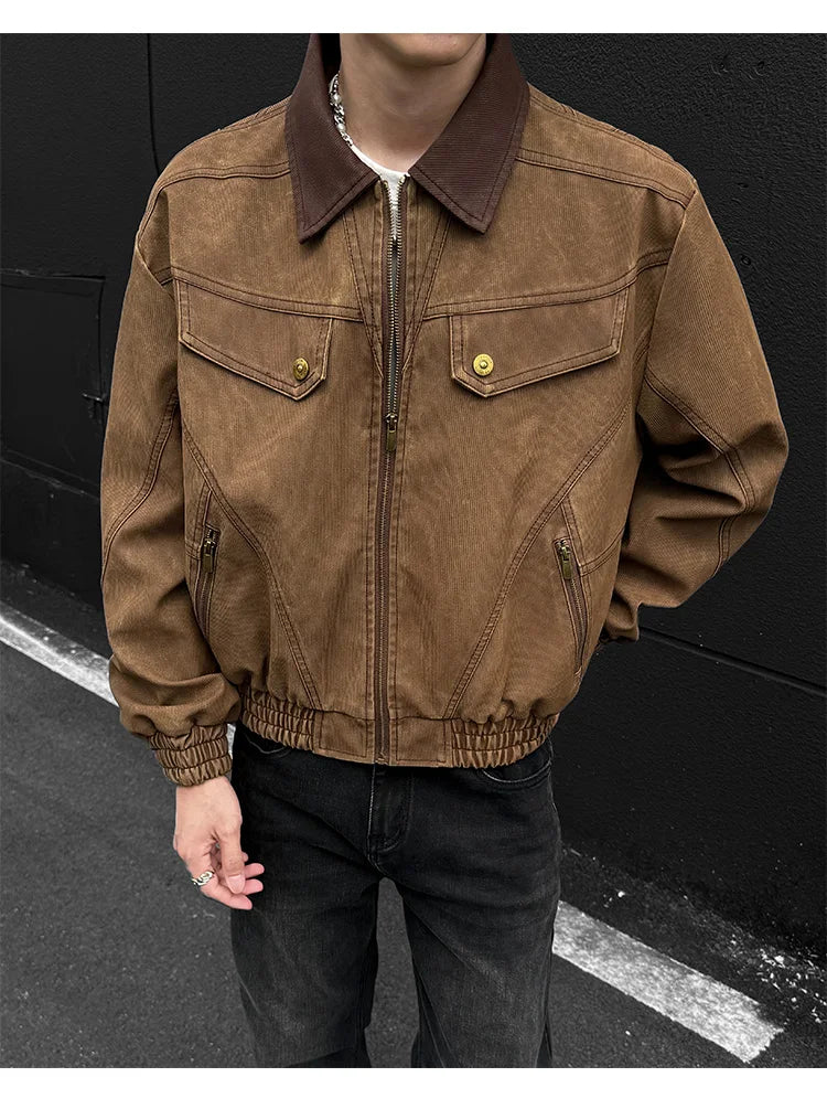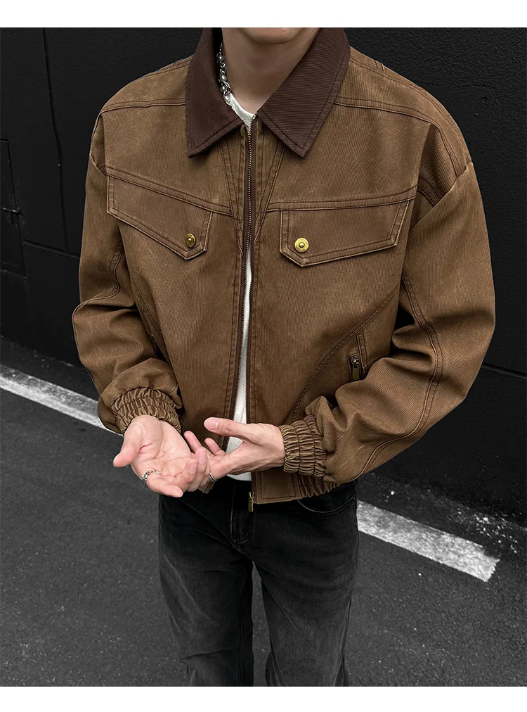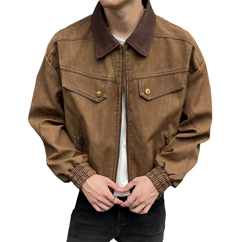 HEARUJOY - PU Jacket men 2025 autumn winter new faux leather men jacket contrast collar design short motorcycle windproof fashion trendy