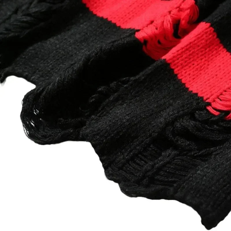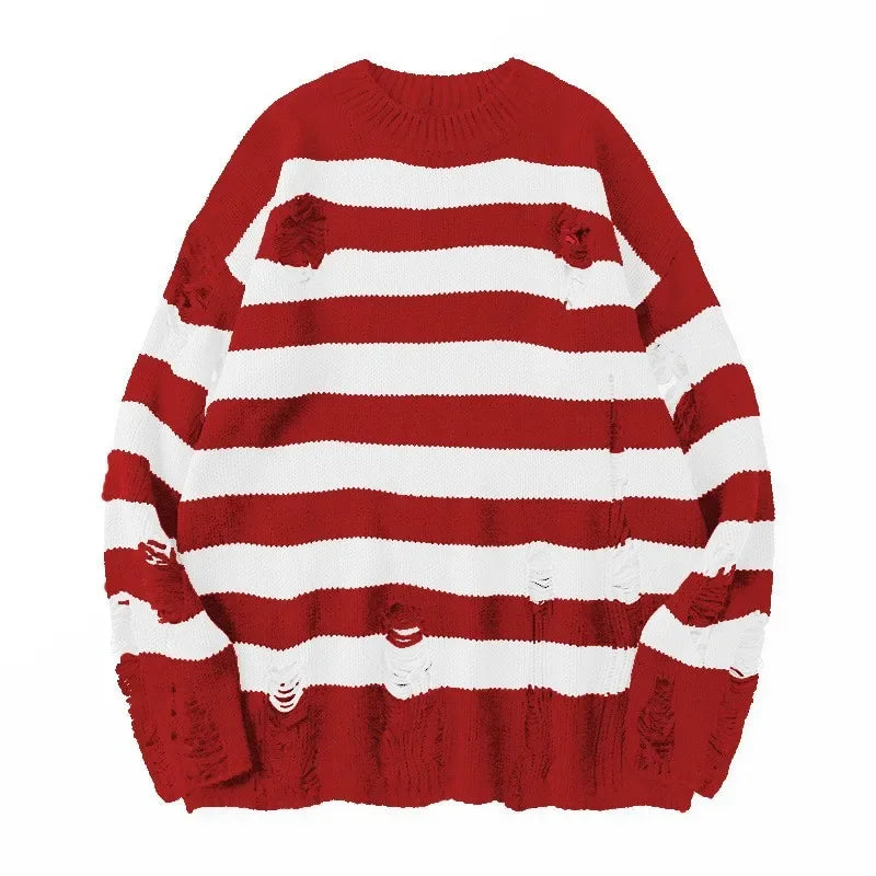 HEARUJOY - Pullovers Men Sweaters Striped Hole Tops Knitted Round Neck Full Sleeve Splice Simple Top Knit Casual Loose Autumn Winter 2025