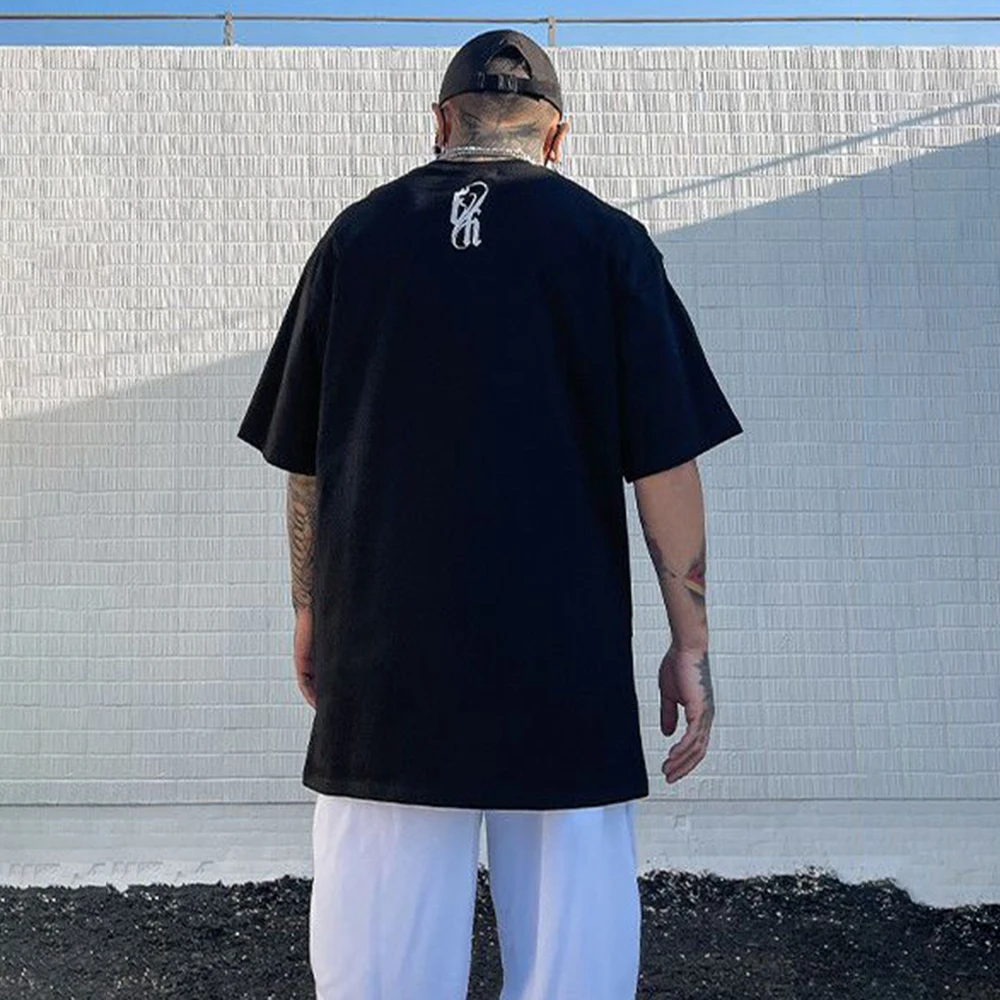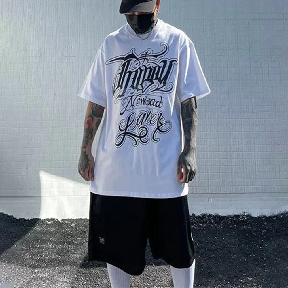 Hearujoy Pure Cotton Hip-hop Casual Short-sleeved T-shirt 2024 Summer New Chicano Print Street Retro Loose All-match Top Men's Clothing