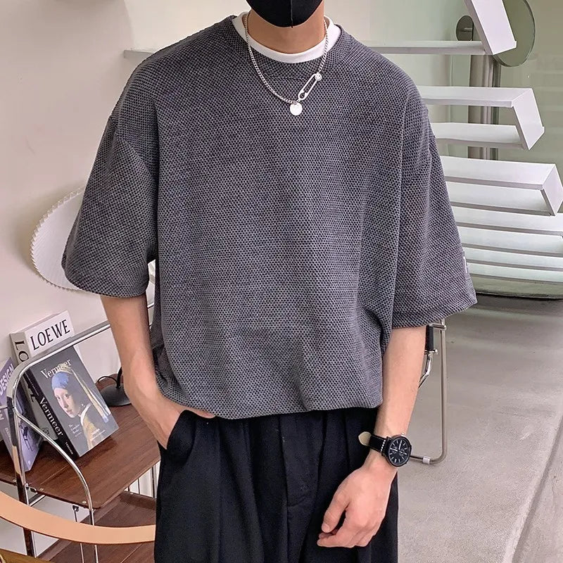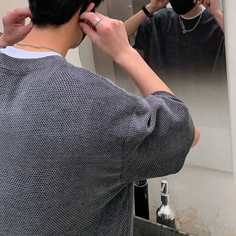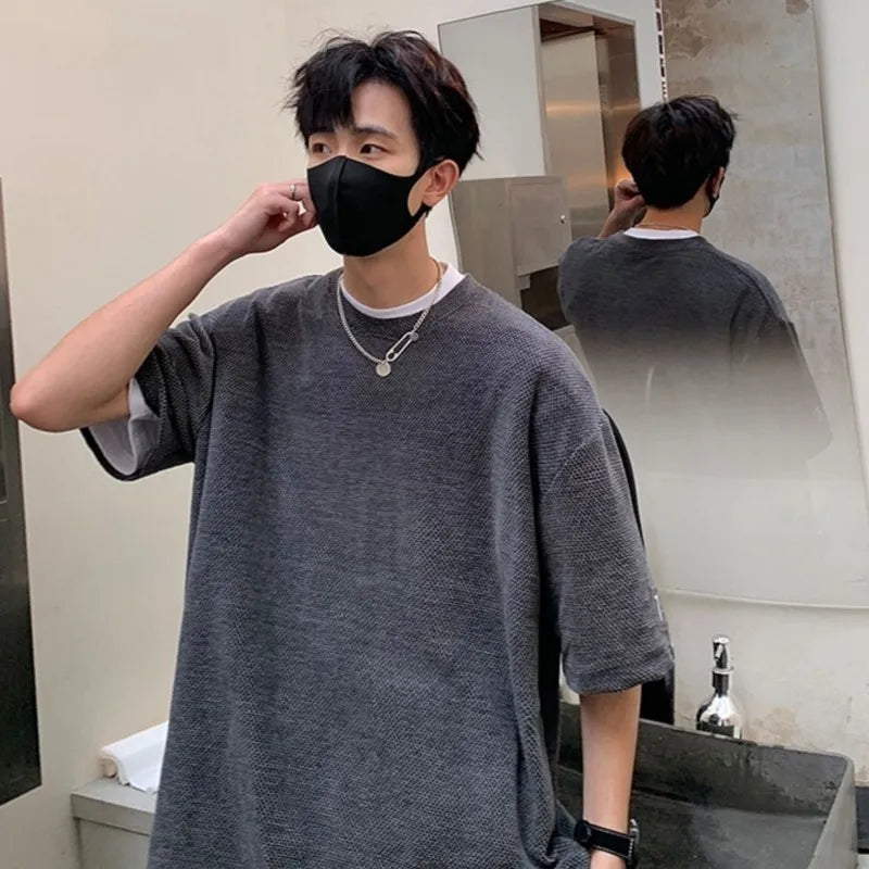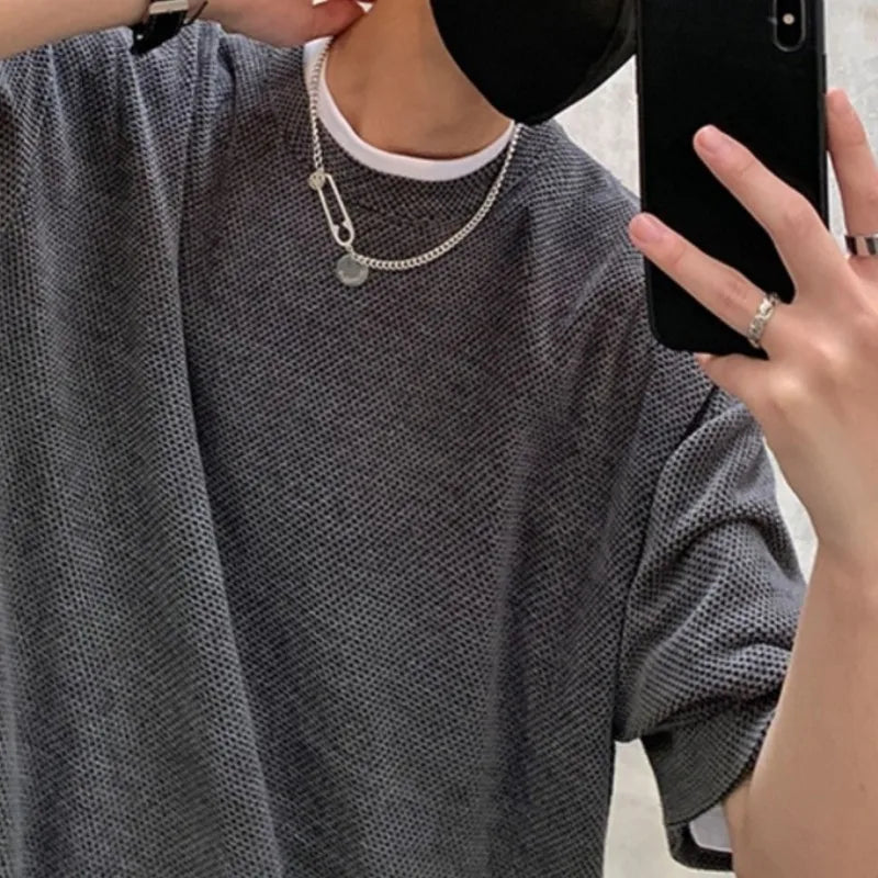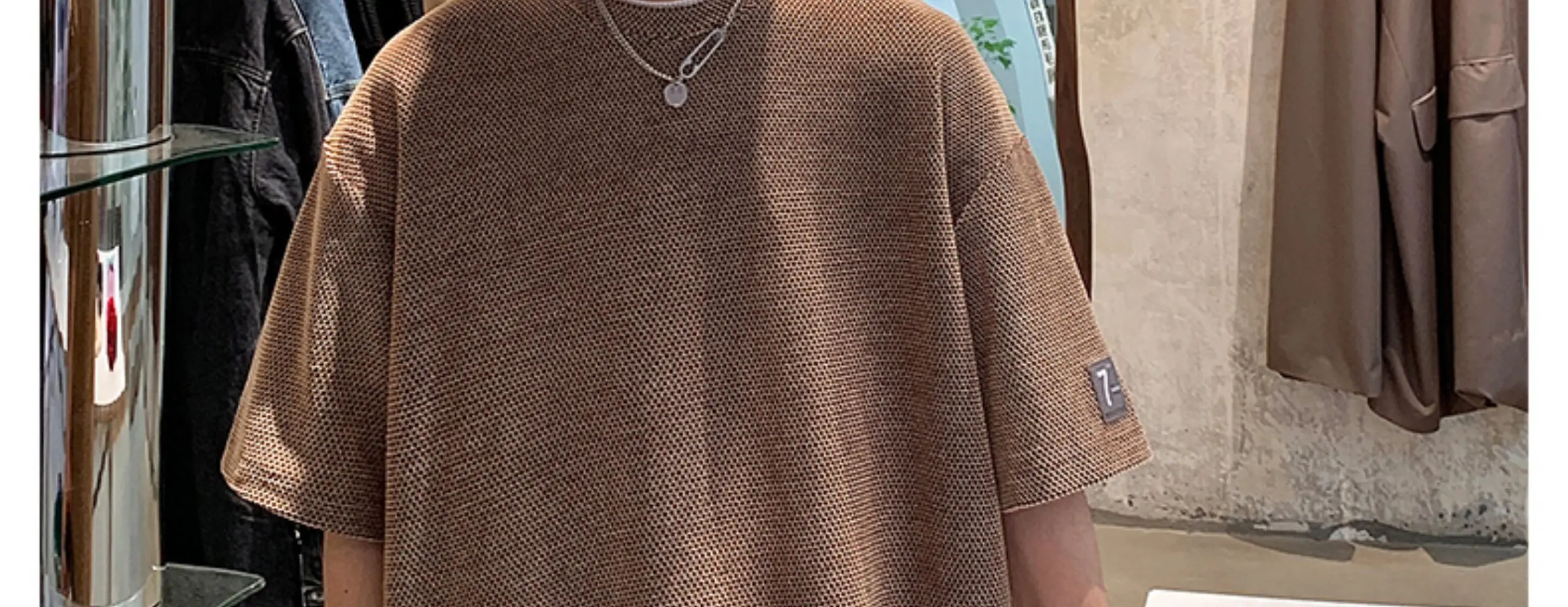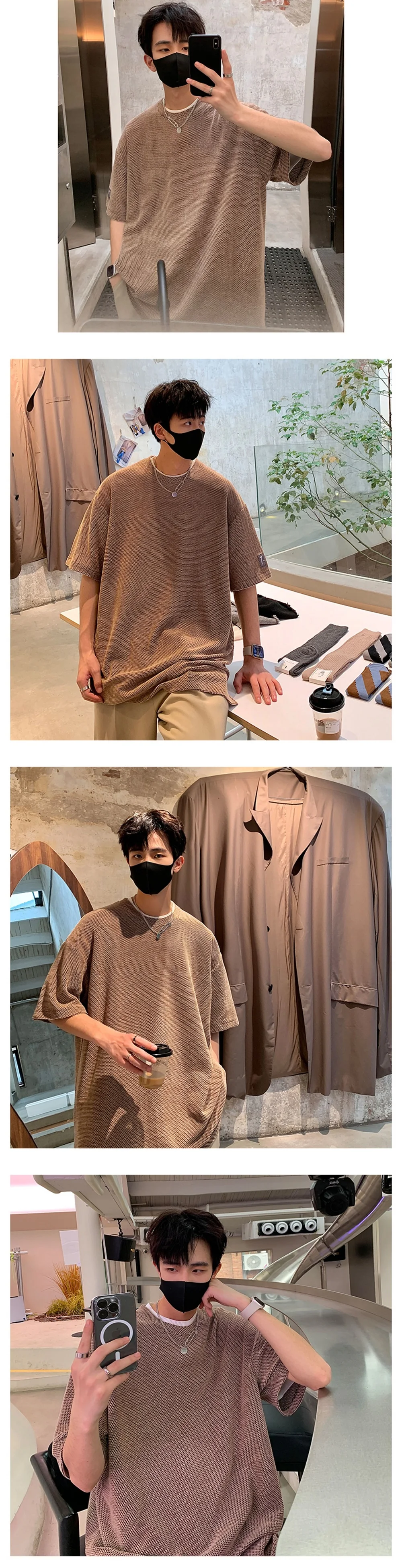 HEARUJOY - Recessed design tshirt men Solid Hip Hop Loose Mens T-shirts Casual Chic Summer Short Sleeves Streetwear Tshirt Tees Oversize