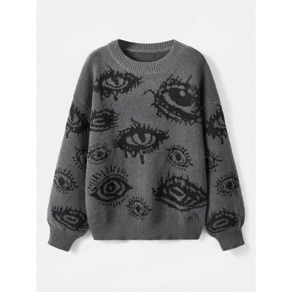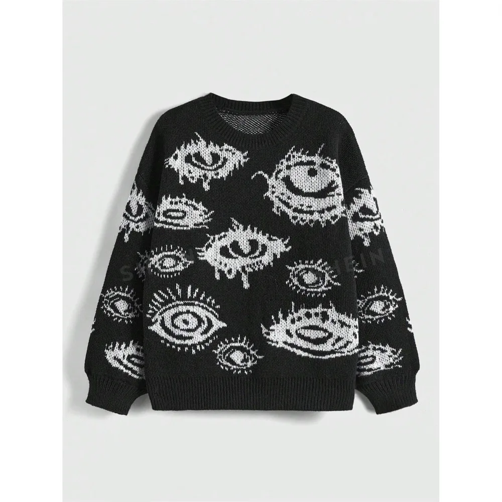 Hearujoy Retro Autumn and Winter Thickened Rabbit Fur Sweaters Men Clothing Oversized Eye Pattern Knit Sweater Men Women Pullover Sweater