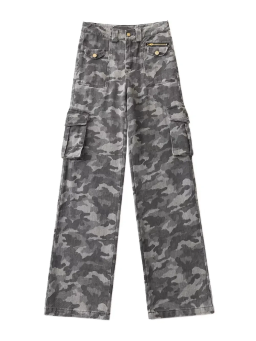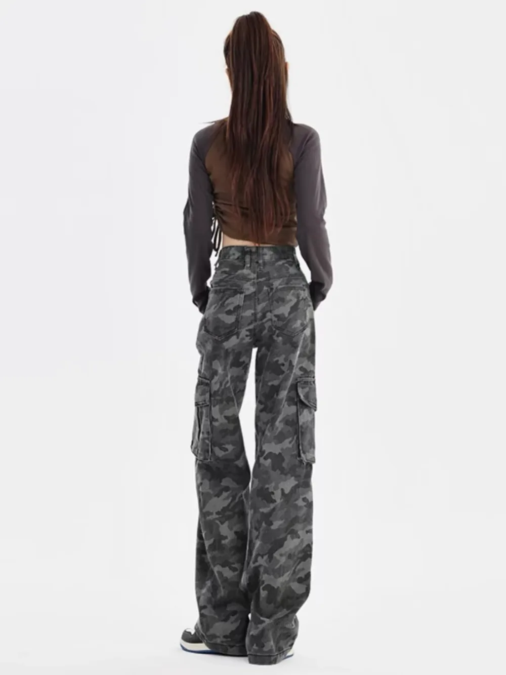 Hearujoy Retro High Street Loose Wide Legs Camouflage Overalls Women New High Waist Slouchy Straight Baggy Jeans Women Streetwear