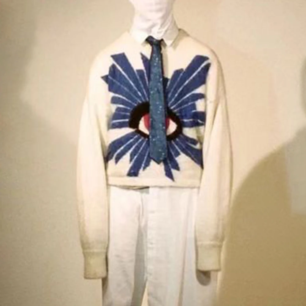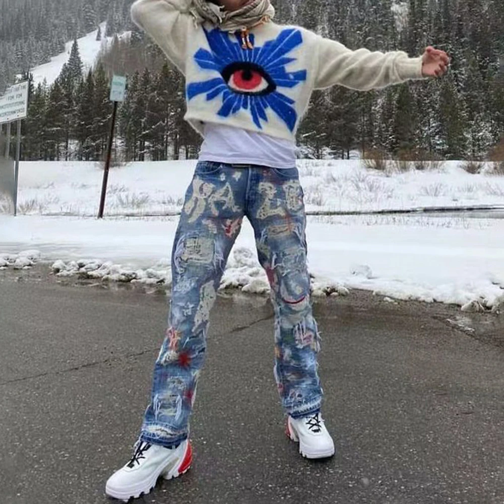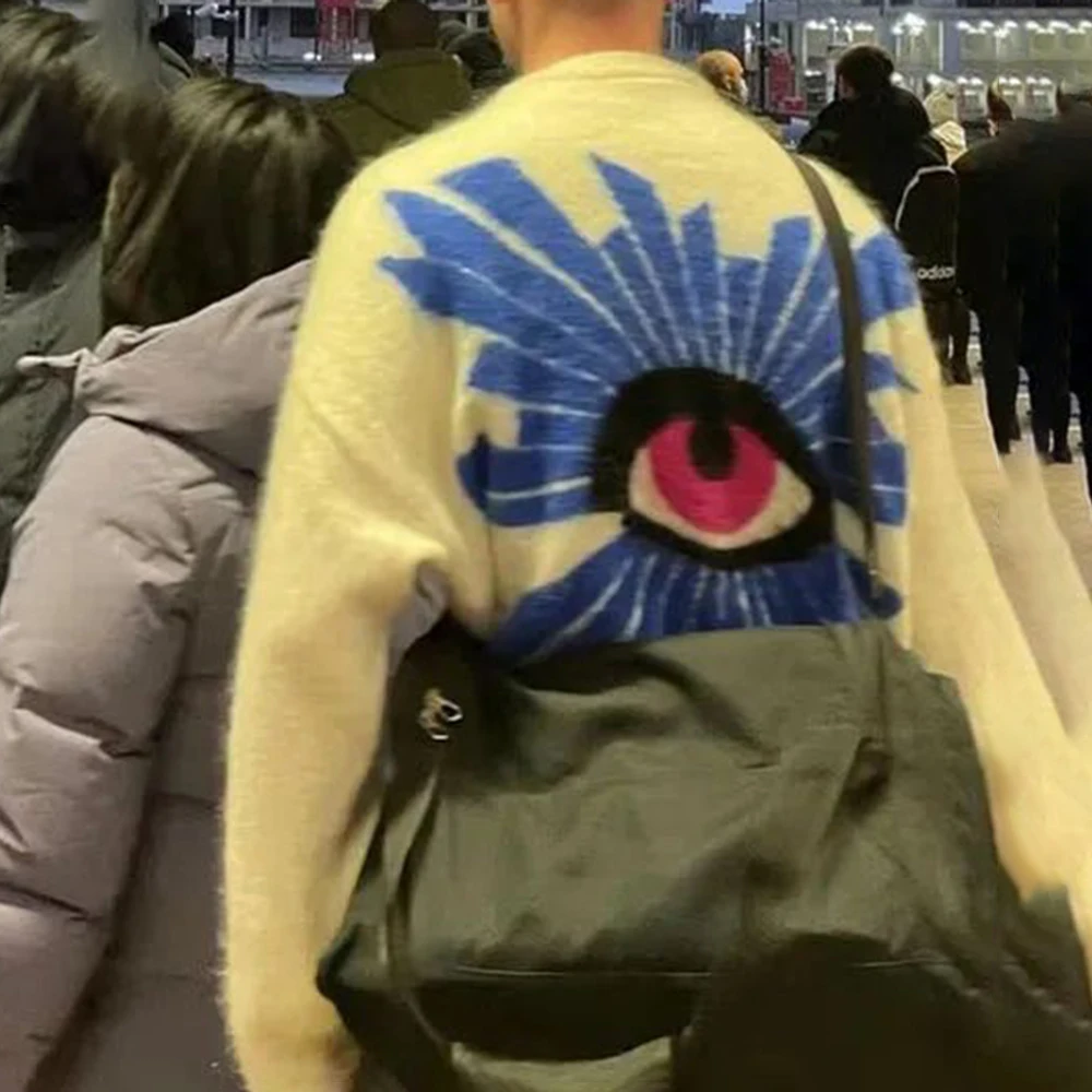Hearujoy Retro Knitted Sweater Unisex American Warm Sweater Men's and Women's Harajuku Eye Pattern Cotton Y2K Couple Pullover