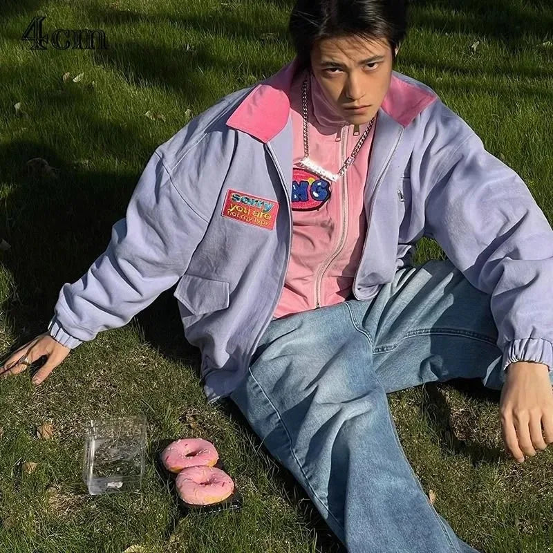 HEARUJOY - Retro Purple Spring Jackets Men Women Bomber Spring Autumn Loose Harajuku Varsity Coats Zip Up Street Unisex Hip Hop Outwear New