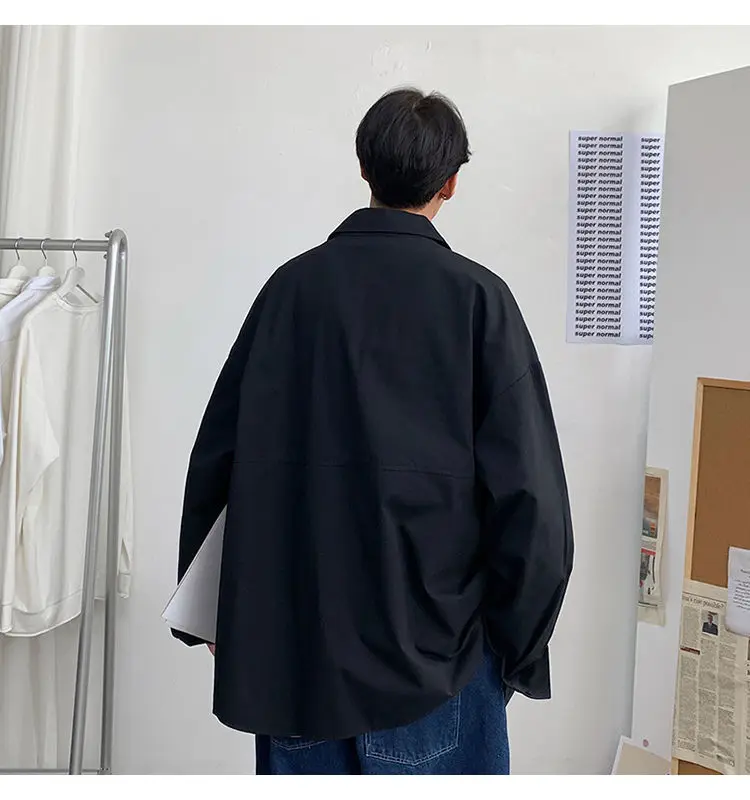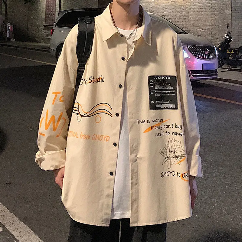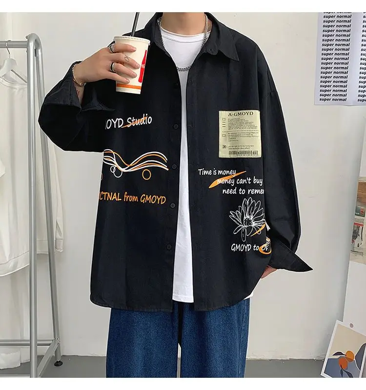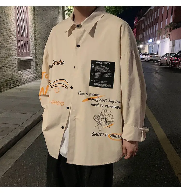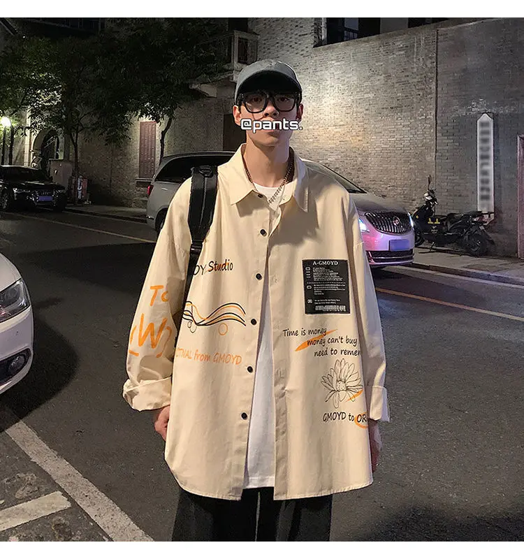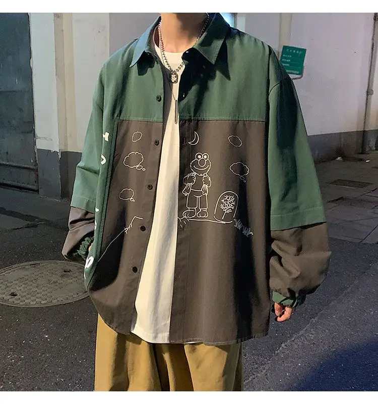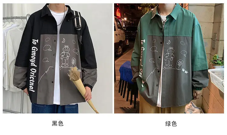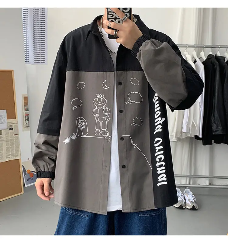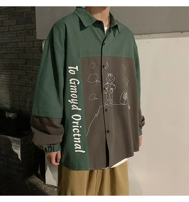 Hearujoy Shirt Men's Coat Korean Style Trendy New Print Splicing Long Sleeved Casual Loose Workwear Shirt Men