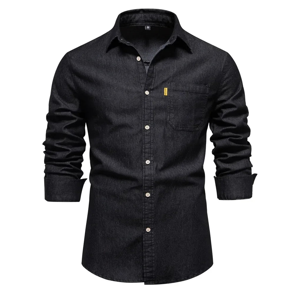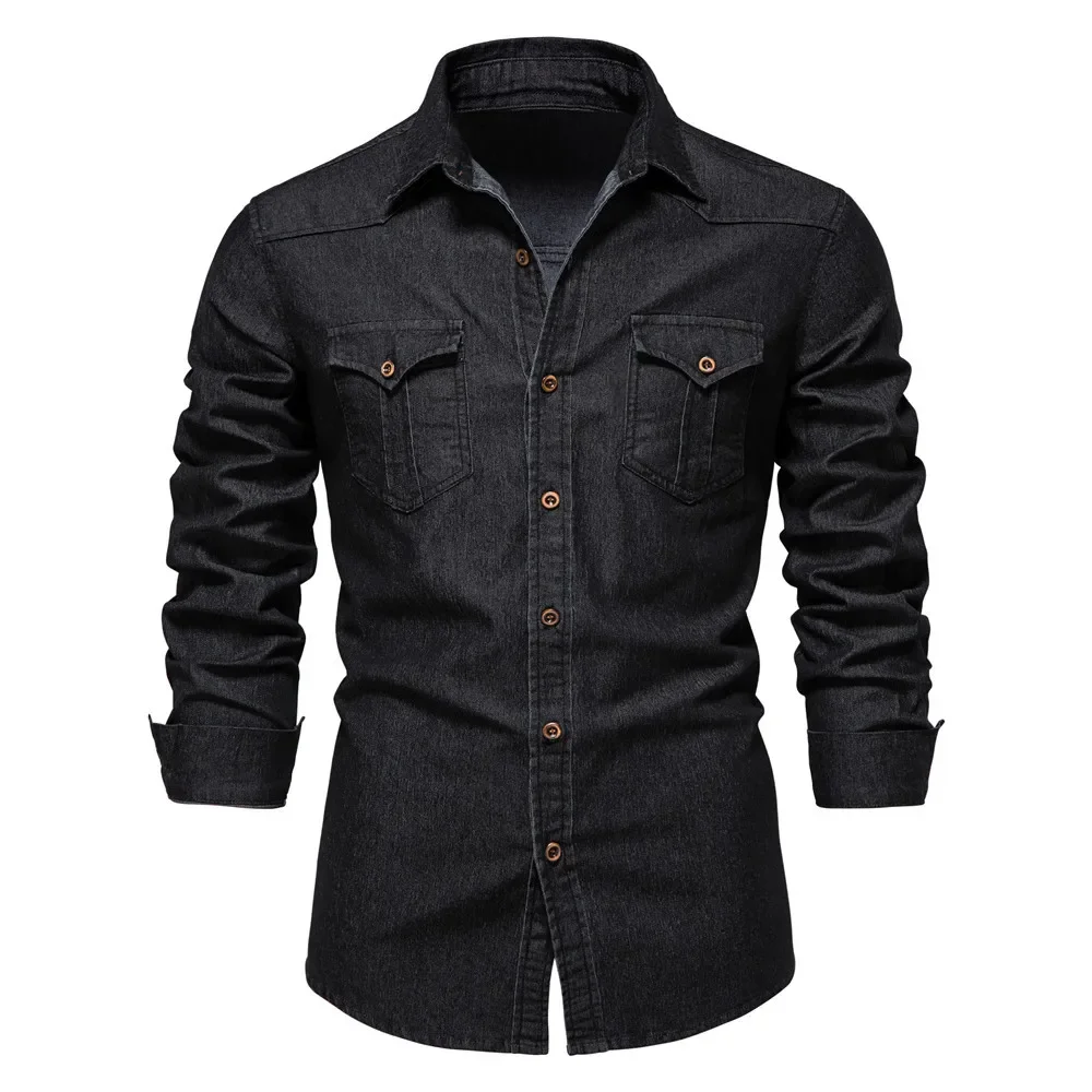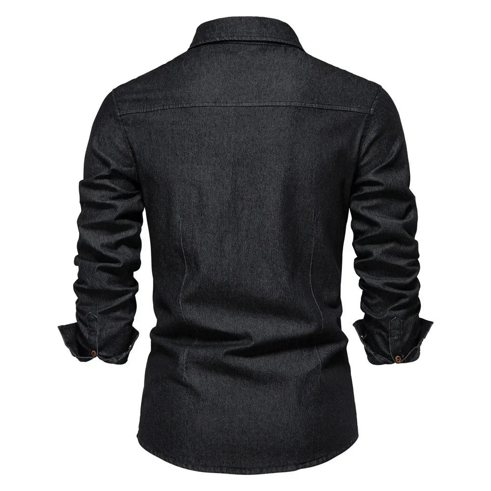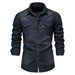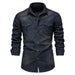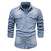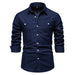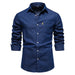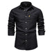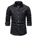 HEARUJOY - Shirts Tops Men Shirt Slim Fit Solid Turn Down Collar Full Sleeve Single Breasted Simple Button Casual Splice Regular Top