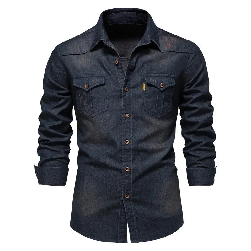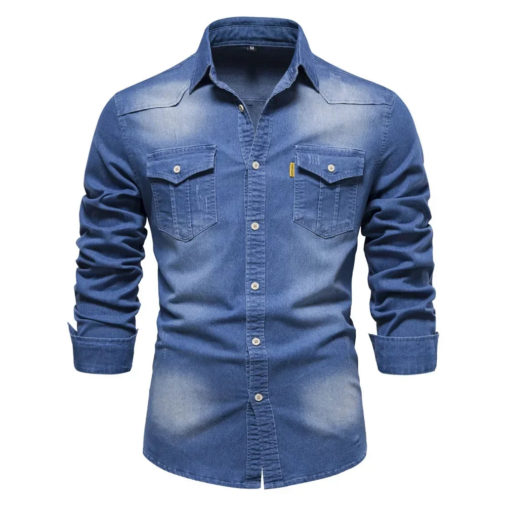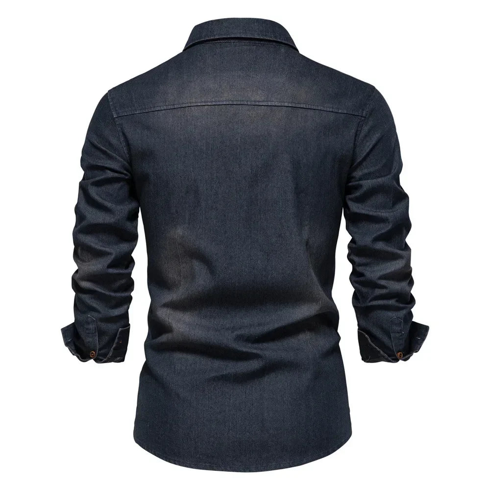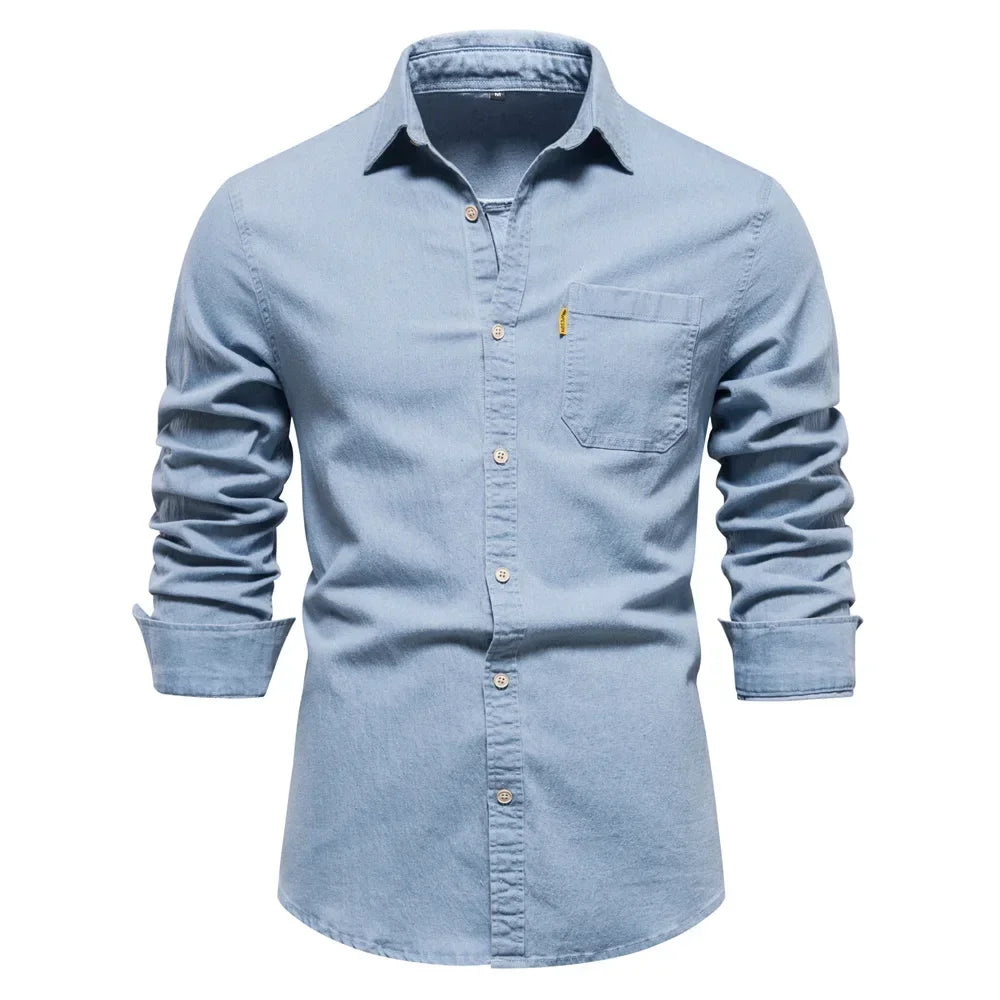 HEARUJOY - Shirts Tops Men Shirt Slim Fit Solid Turn Down Collar Full Sleeve Single Breasted Simple Button Casual Splice Regular Top