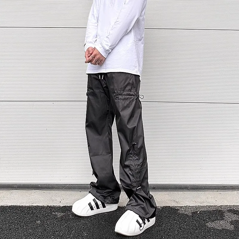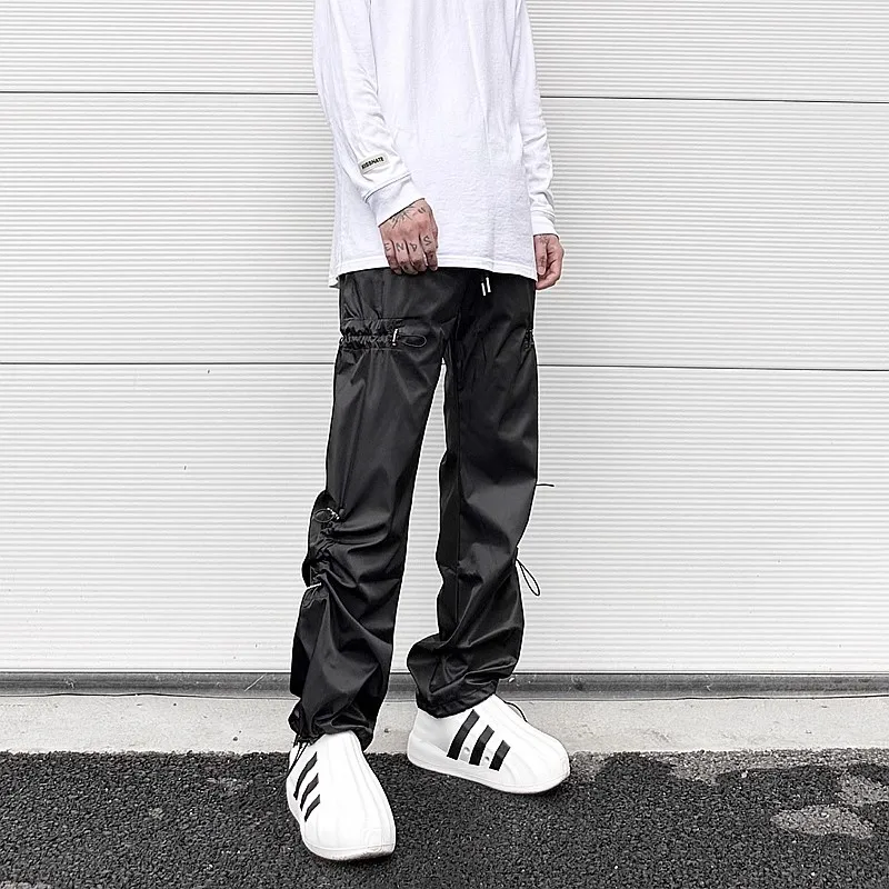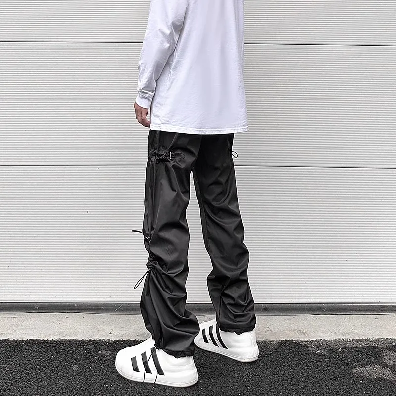 Hearujoy Side Elastic Waist Drawstring Black Cargos for Men Pantalones Hombre Baggy Y2k Straight Overalls Oversized Functional Trousers