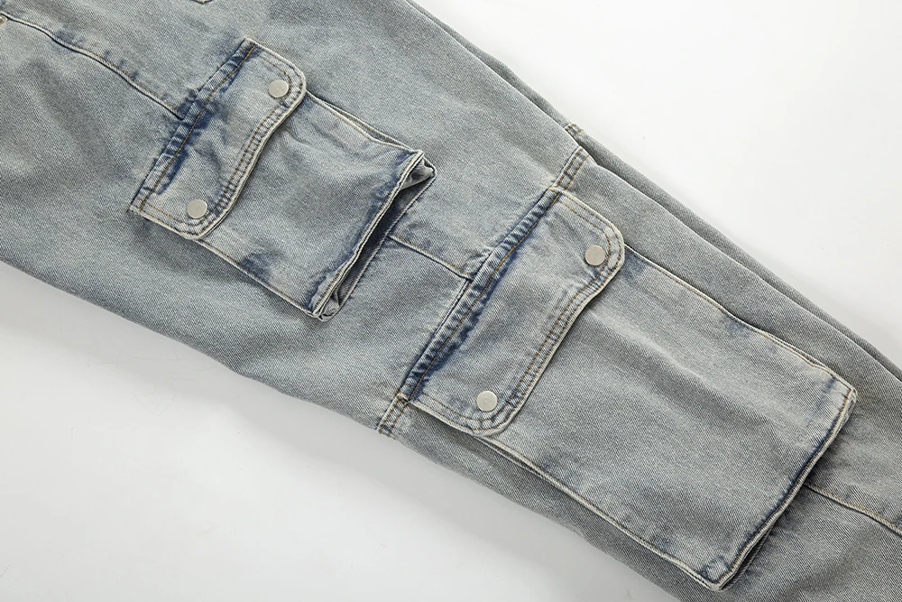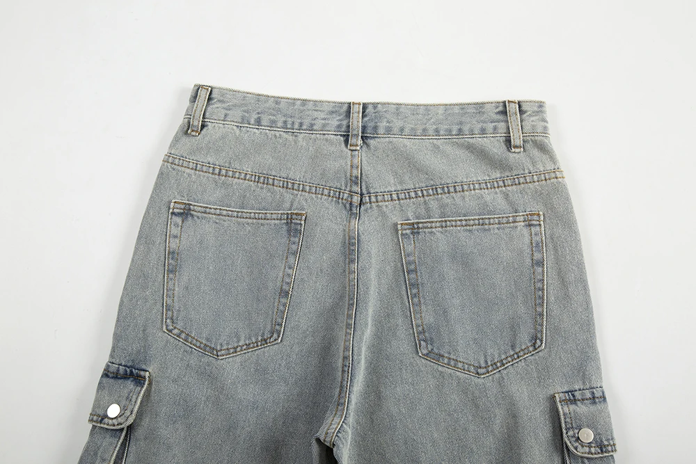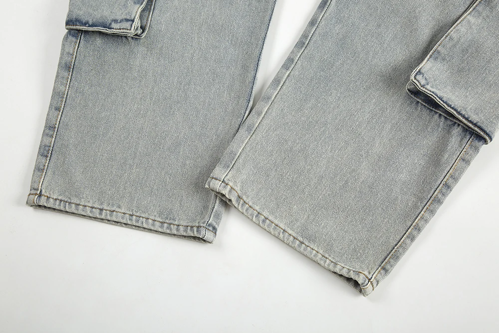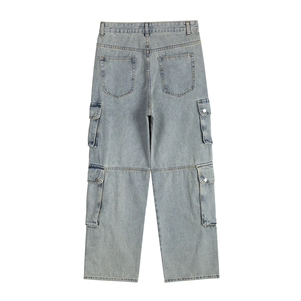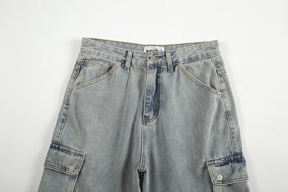 Hearujoy Side Pocket Washed Light Blue Baggy Jeans for Men Pantalones Hombre Y2k Straight Casual Denim Trousers Oversized Cargo Pants