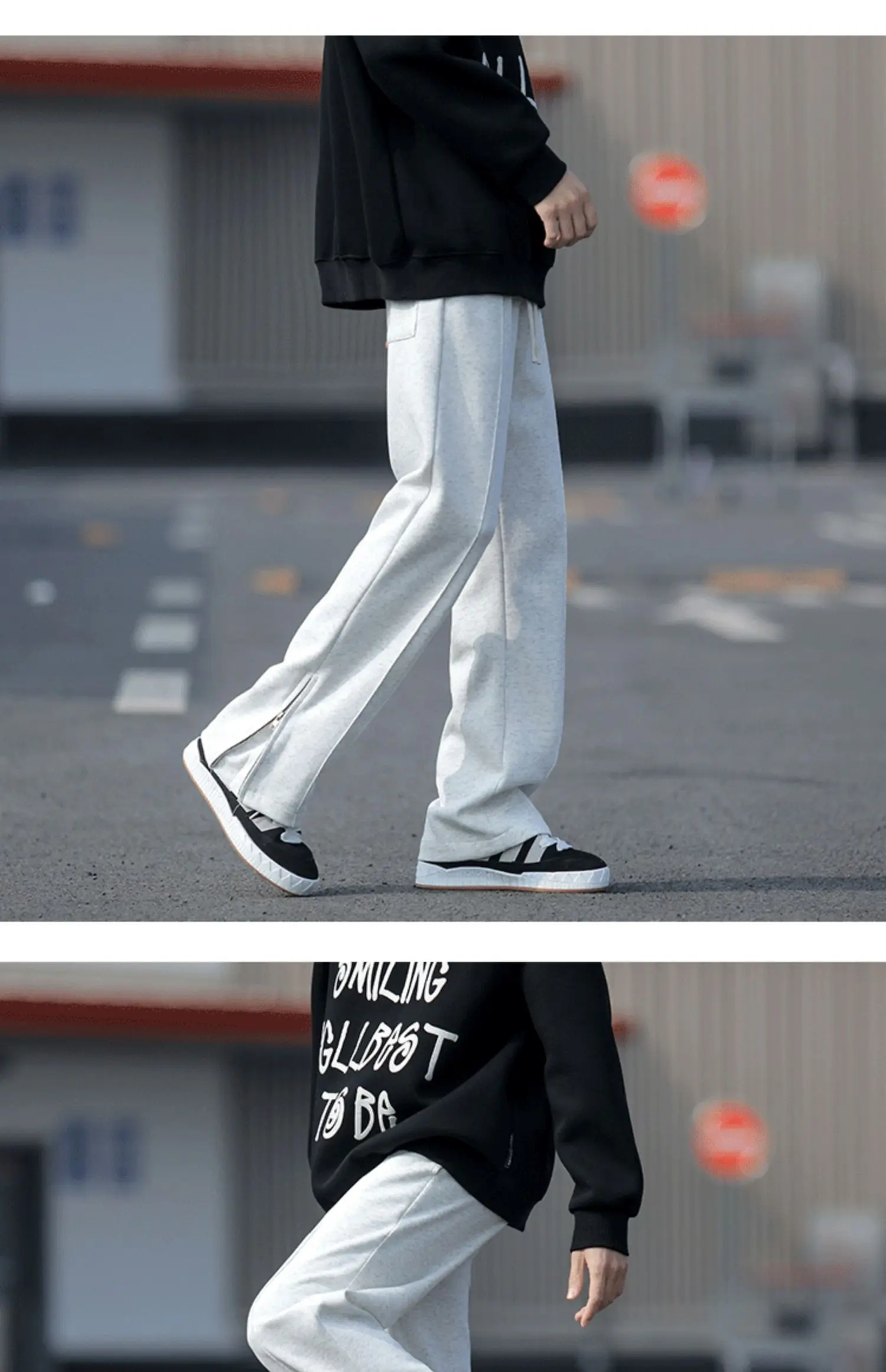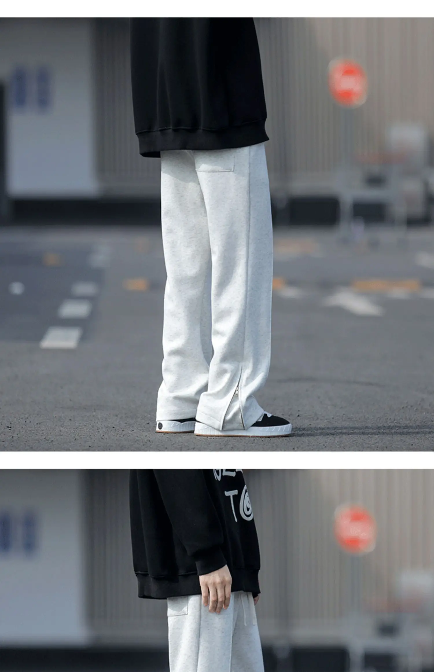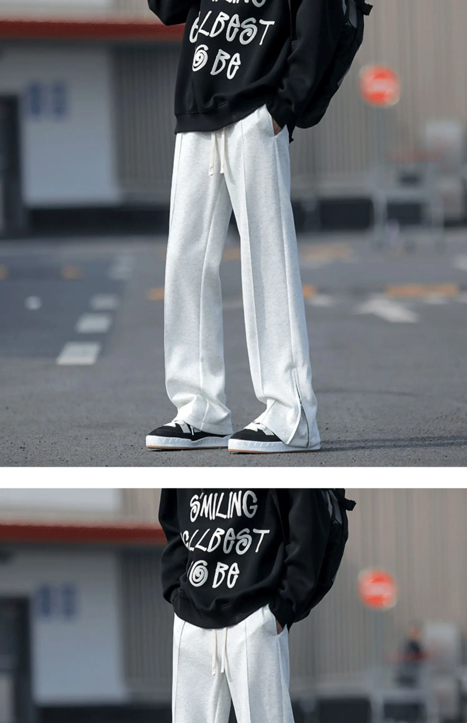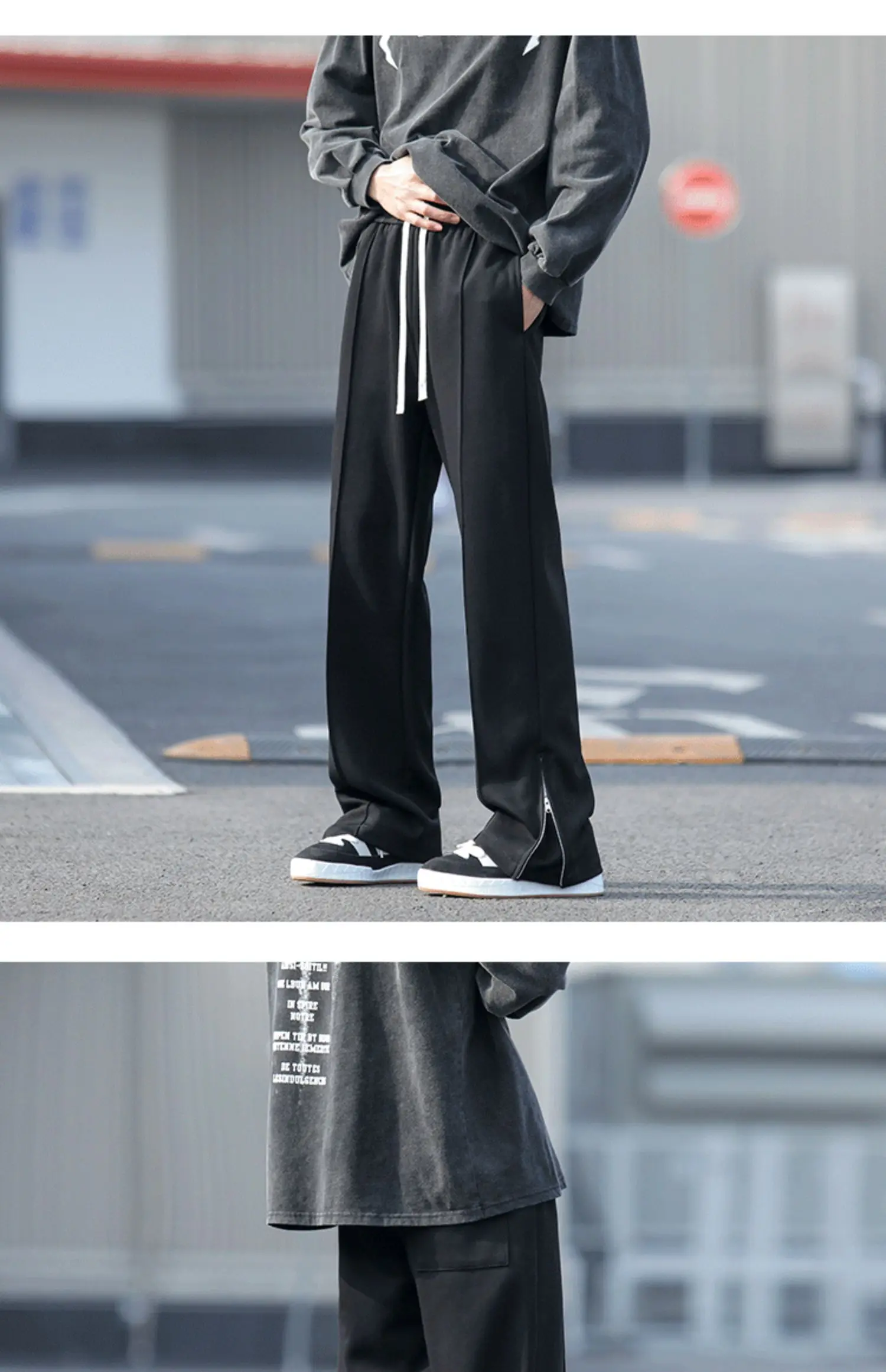 Hearujoy Side Zippers Straight Sweatpants Men Solid Color Harem Pants Male Korean Loose Casual Streetwear Sport Trousers White/Black