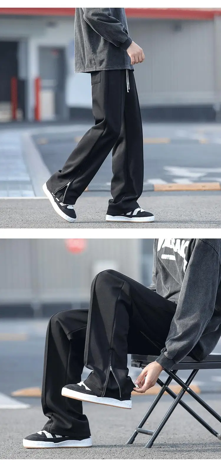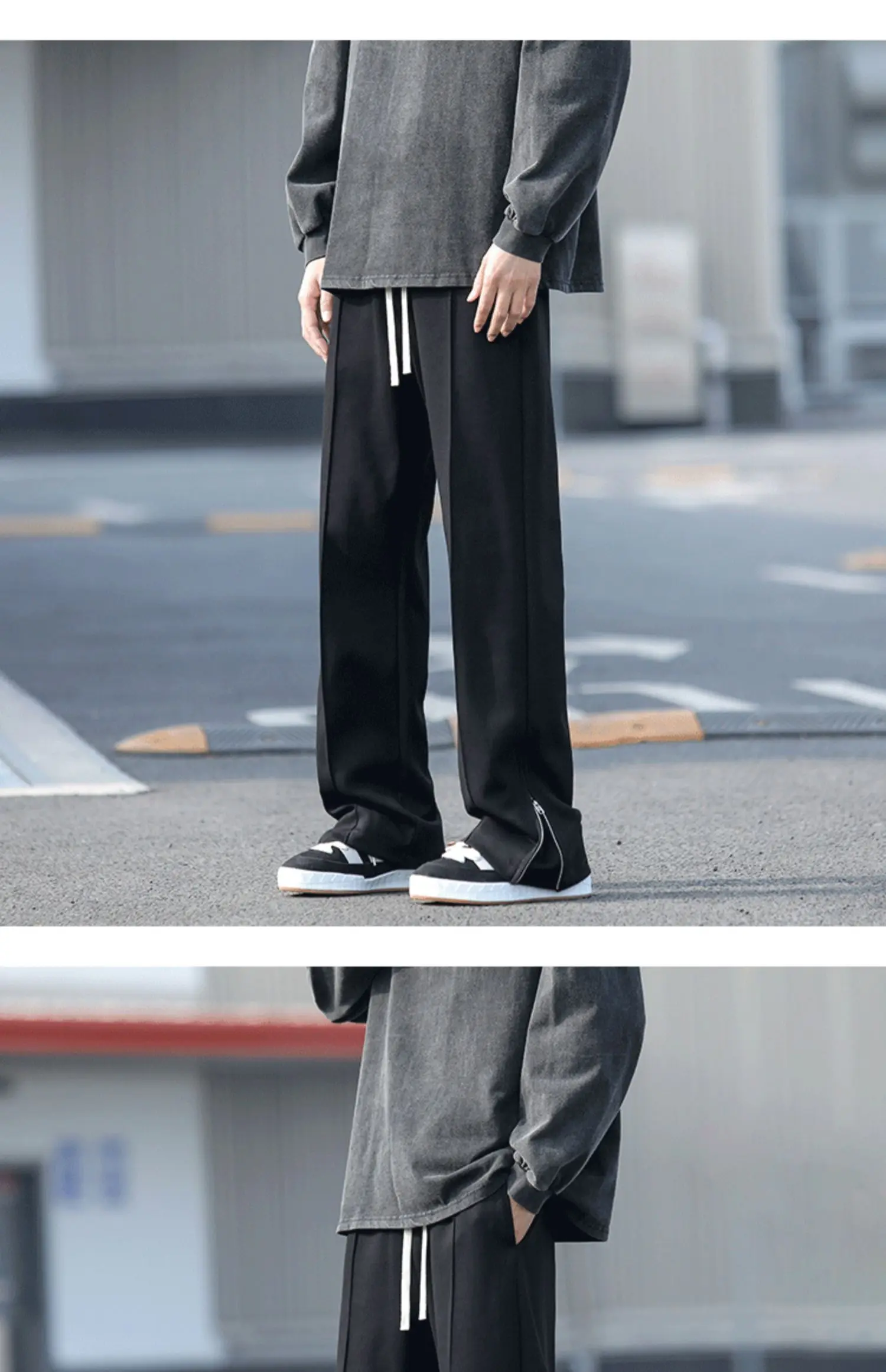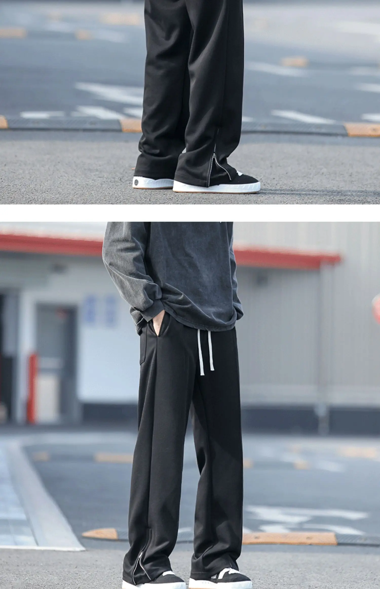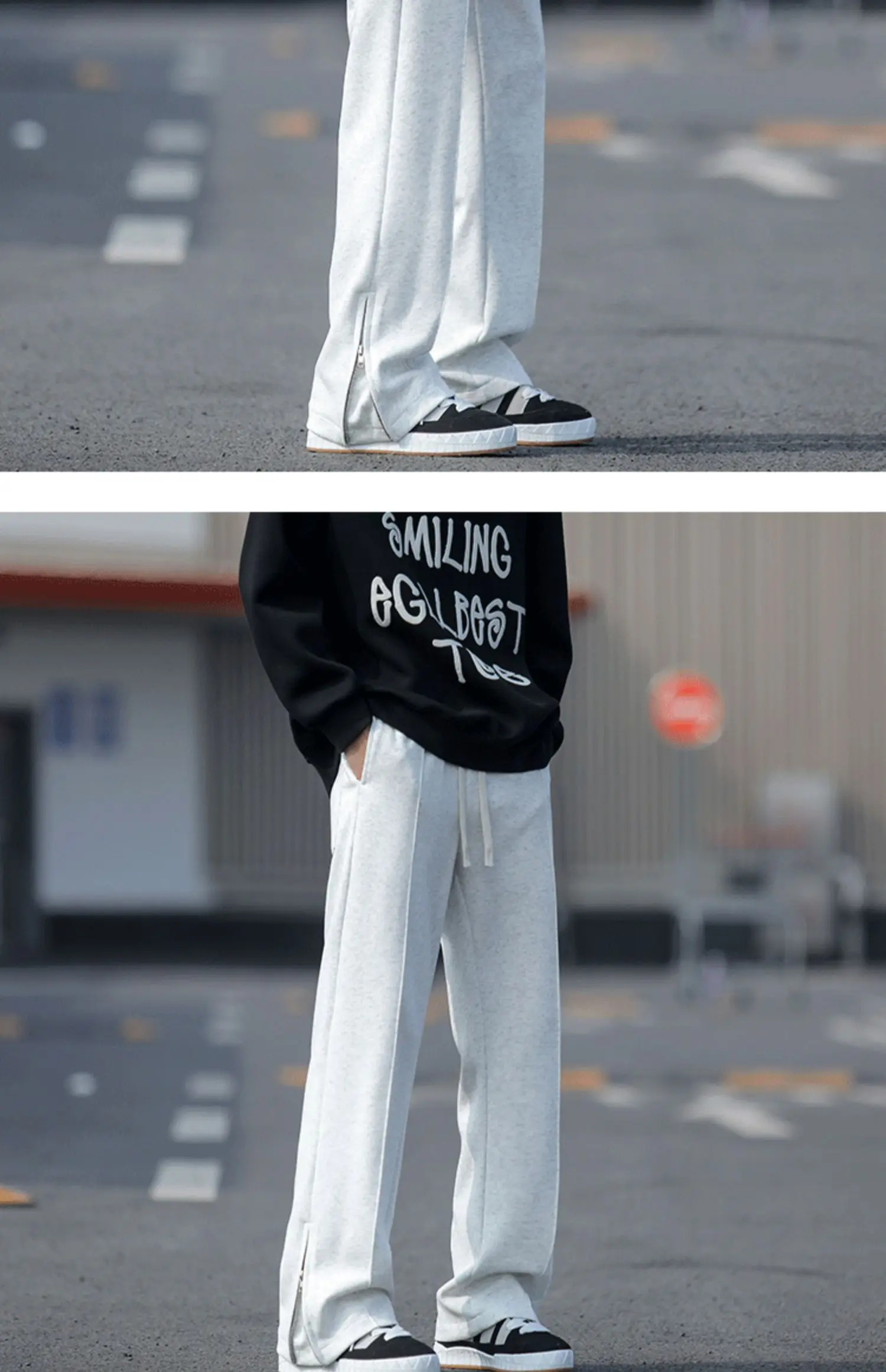 Hearujoy Side Zippers Straight Sweatpants Men Solid Color Harem Pants Male Korean Loose Casual Streetwear Sport Trousers White/Black