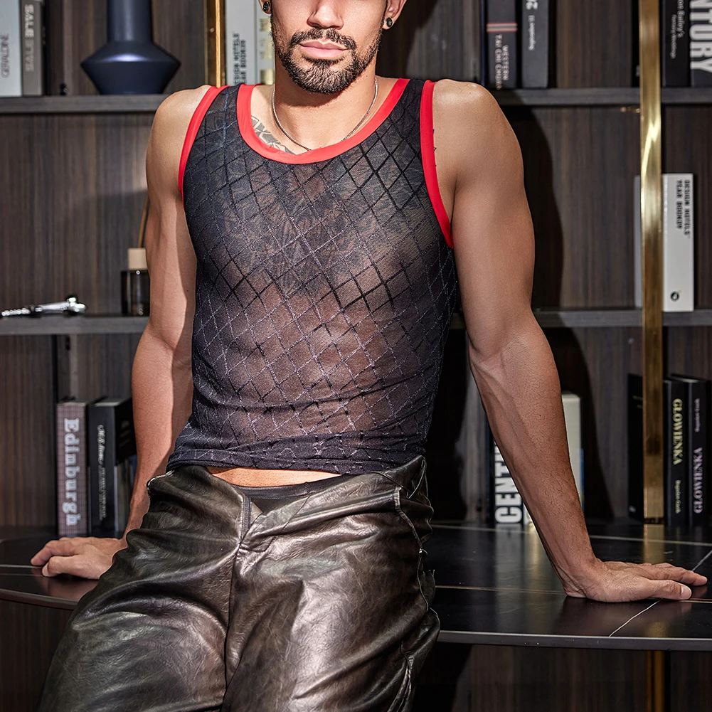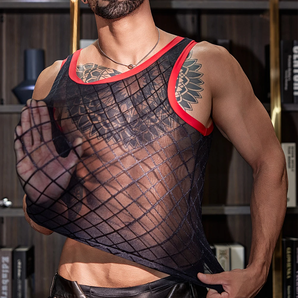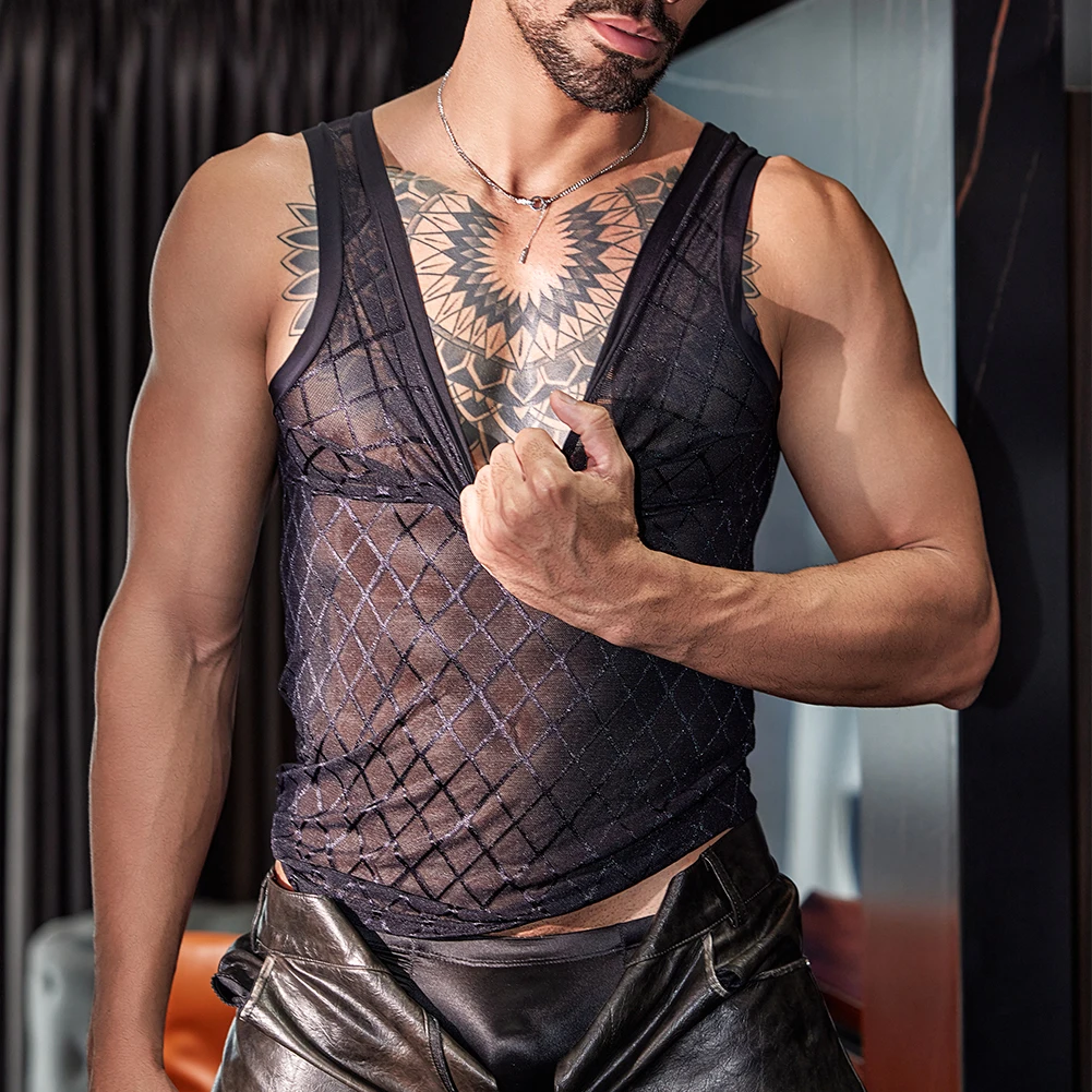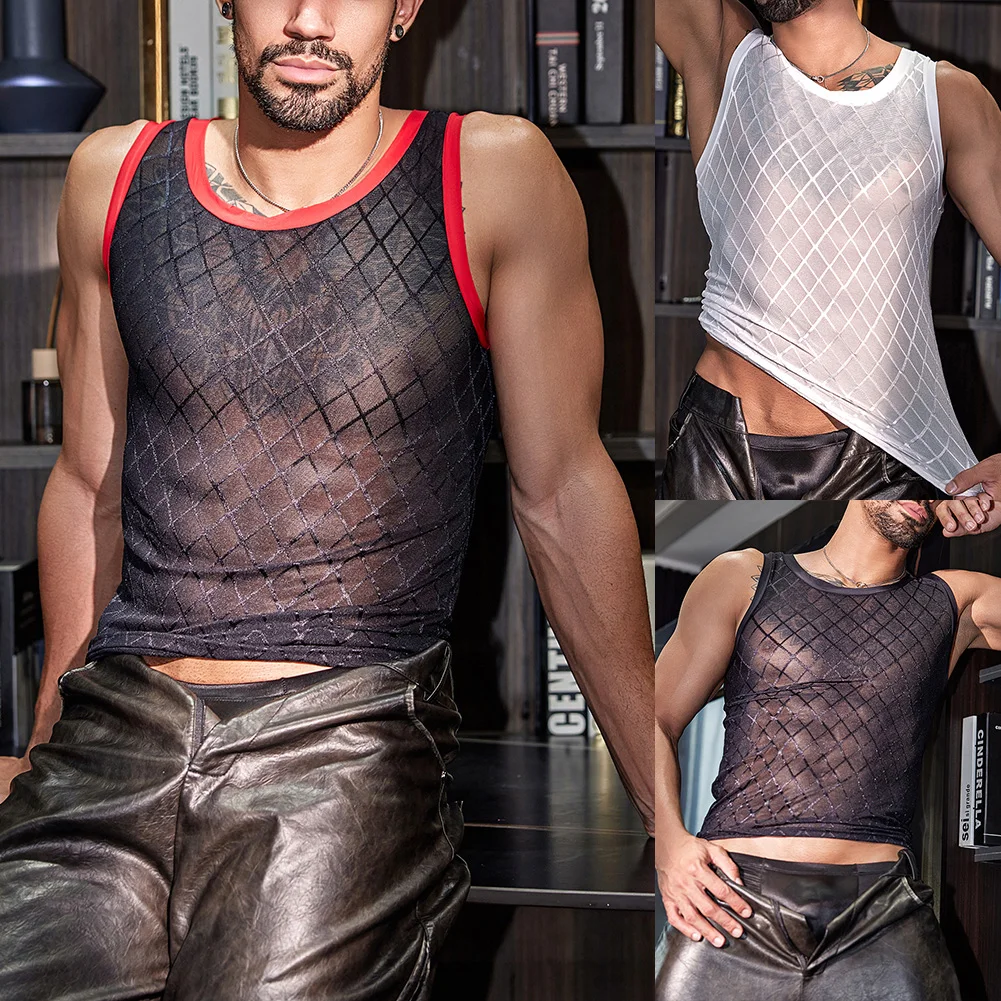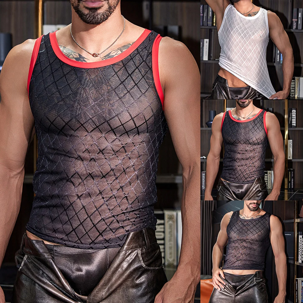 HEARUJOY - Sleeveless Top Mens Tank Tops Sporty Look Party Outfit Regular Length Elastic Fabric Four Seasons Wear Mesh Design