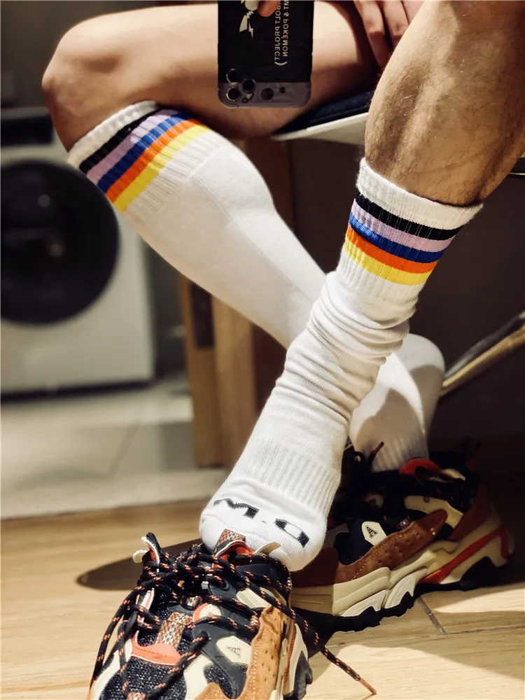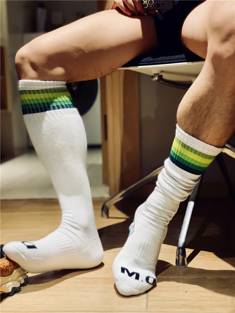 Hearujoy Socks Men Calcetines Striped High Tube Football Socks Skarpetki Men's Socks Sport Sweat Meias Calcetines Hombre Trend Stocking