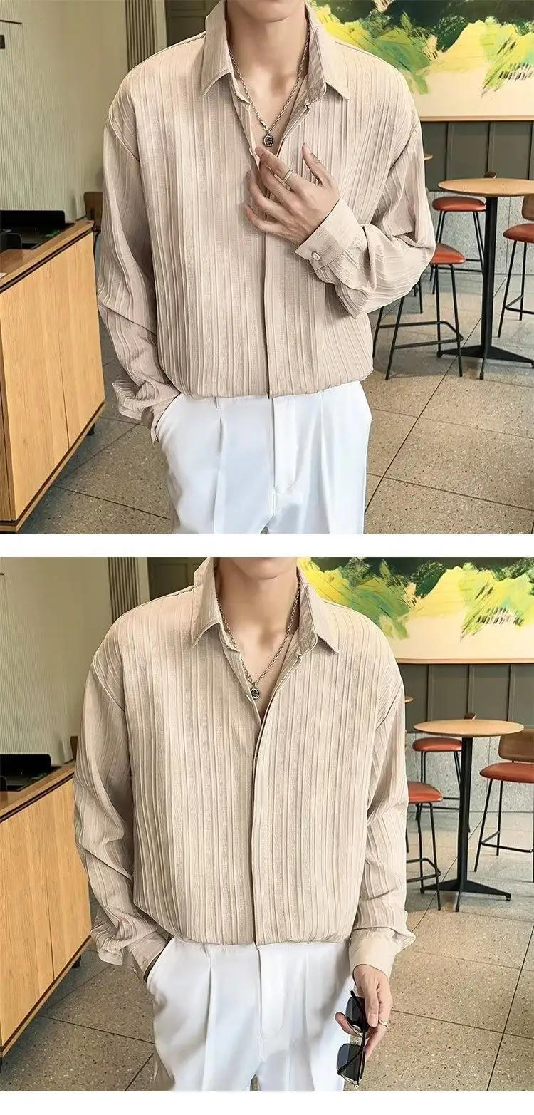 Hearujoy Solid Color Long Sleeved Shirt Men Slim Fit Fashion Social Mens Dress Shirt Korean Pleated Shirt Mens Casual Shirts M-2XL