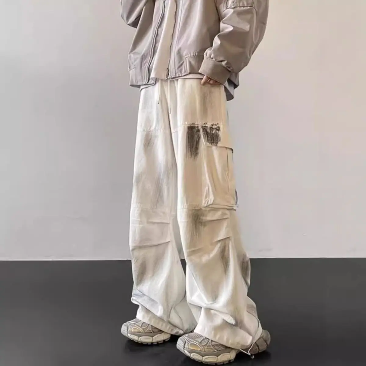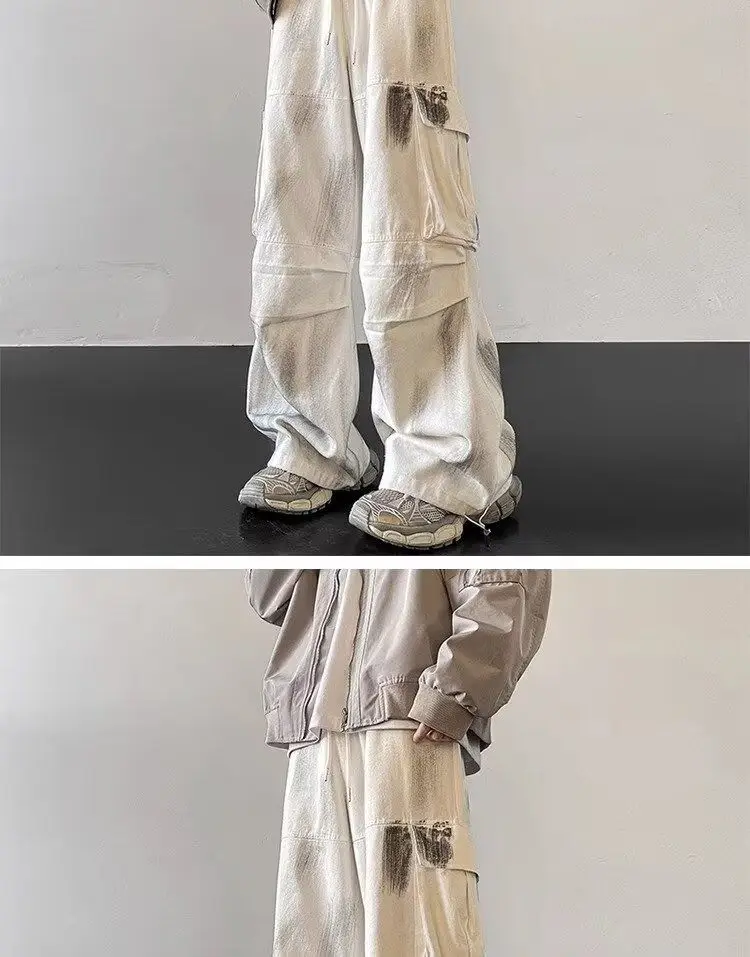 Hearujoy Splash Ink Tie Dye Hanging Work Clothes Jeans for Men and Women Trendy American Hip-hop Loose Straight Leg Pants Instagram Style