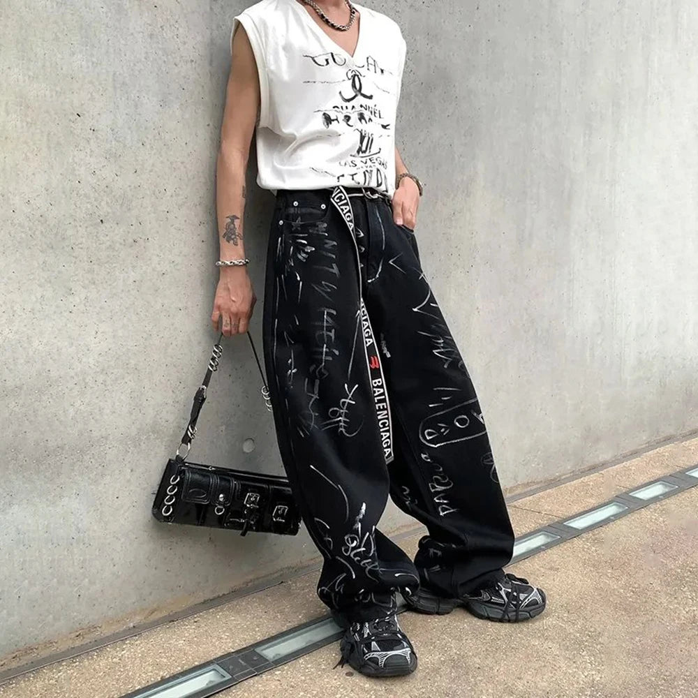 Hearujoy Spring And Autumn Men's Casual Pants Fashionable Trendy Y2k Hip-Hop High Street Graffiti Printed American Vintage Trousers
