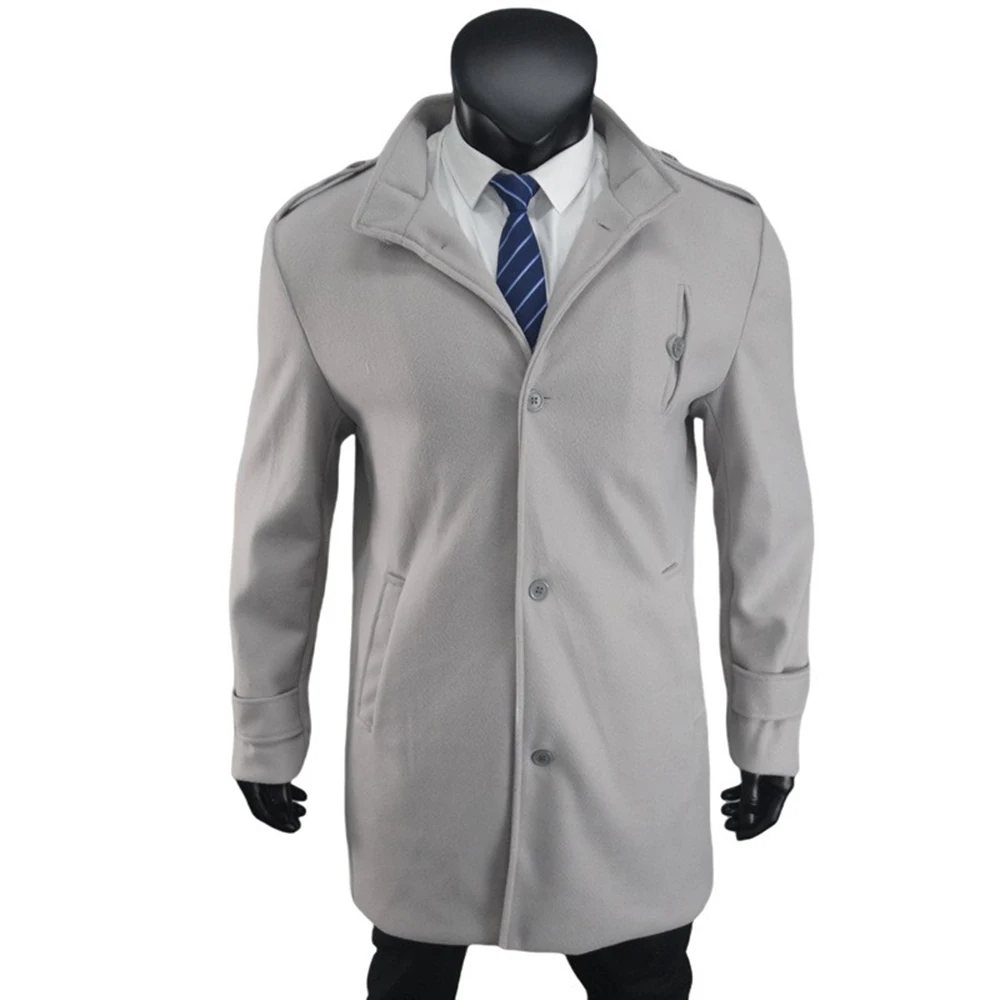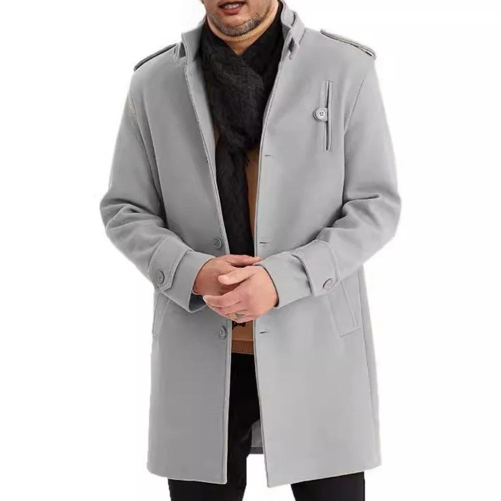 HEARUJOY - Spring and Autumn New Men's Solid Color Y2K Wool Coat Fashion Trend Casual Daily Single-Breasted Mid-Length Windbreaker Men