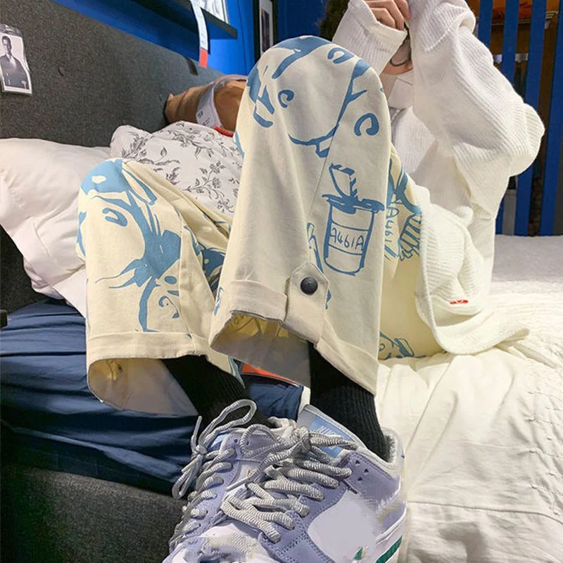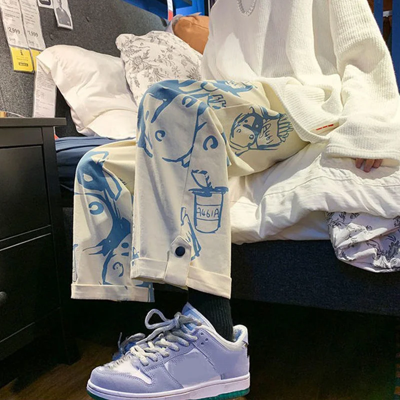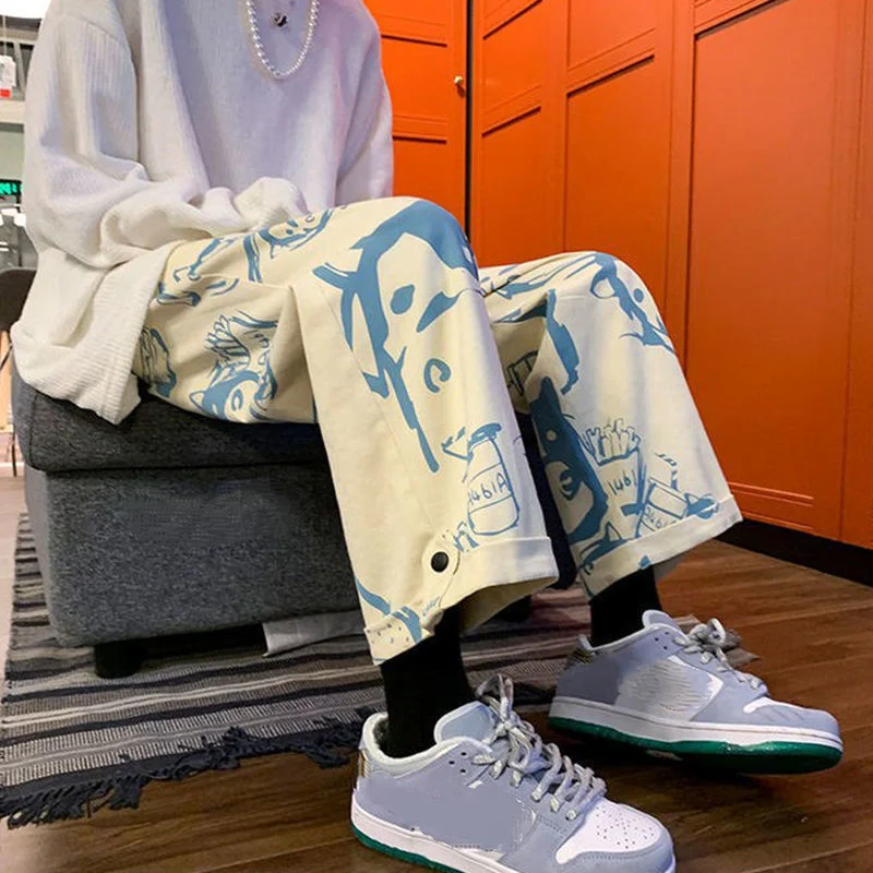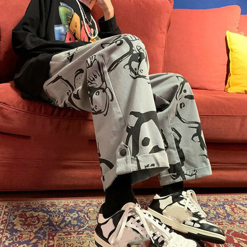 Hearujoy Spring And Summer Trend Hip Hop Wide Leg Pants Men With Loose Casual Sports Pants High Street Straight Pants Large Size S-5XL