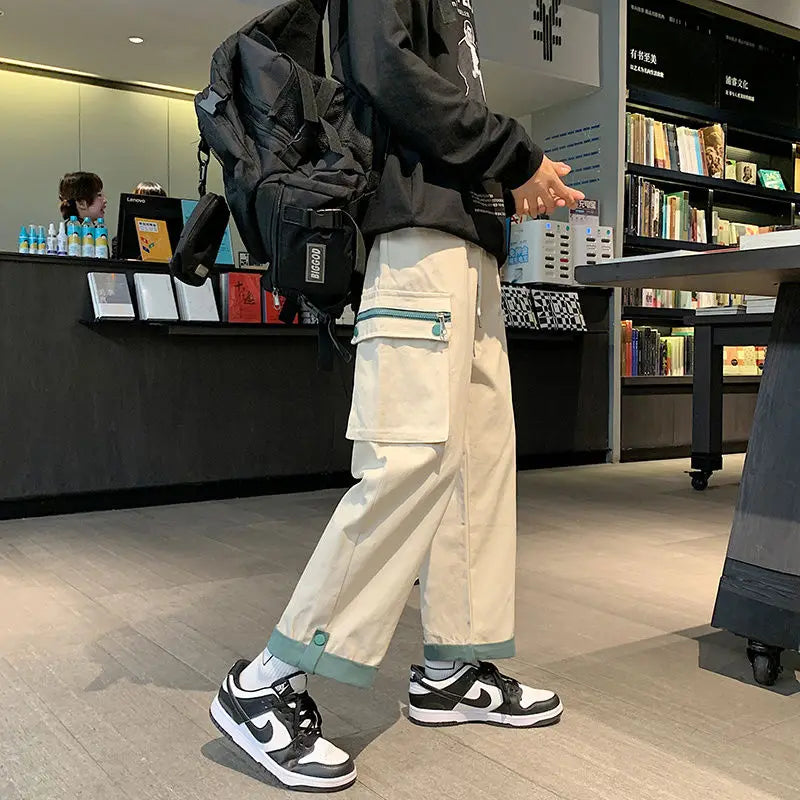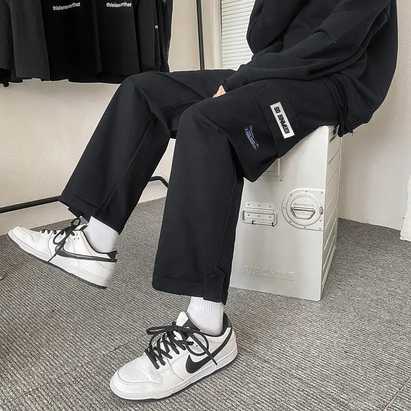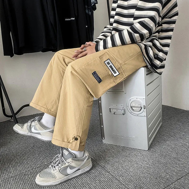 HEARUJOY - Spring Autumn Casual Print Patchwork Cotton Wide Leg Pants Man Loose Y2k Pocket Hip Hop Cargo Straight Male Trousers Streetwear