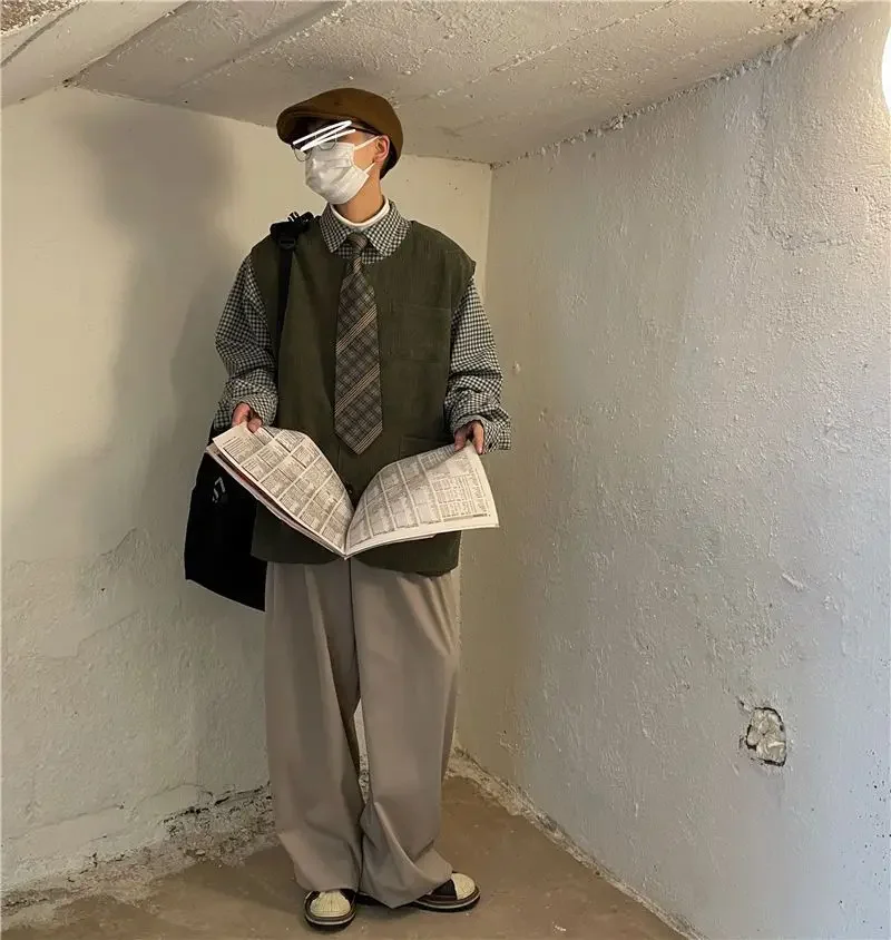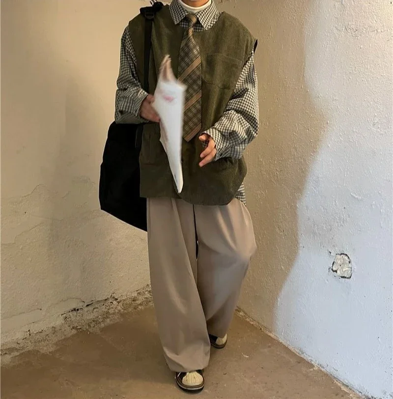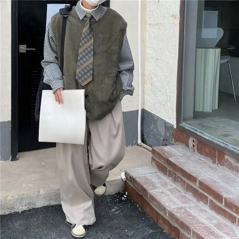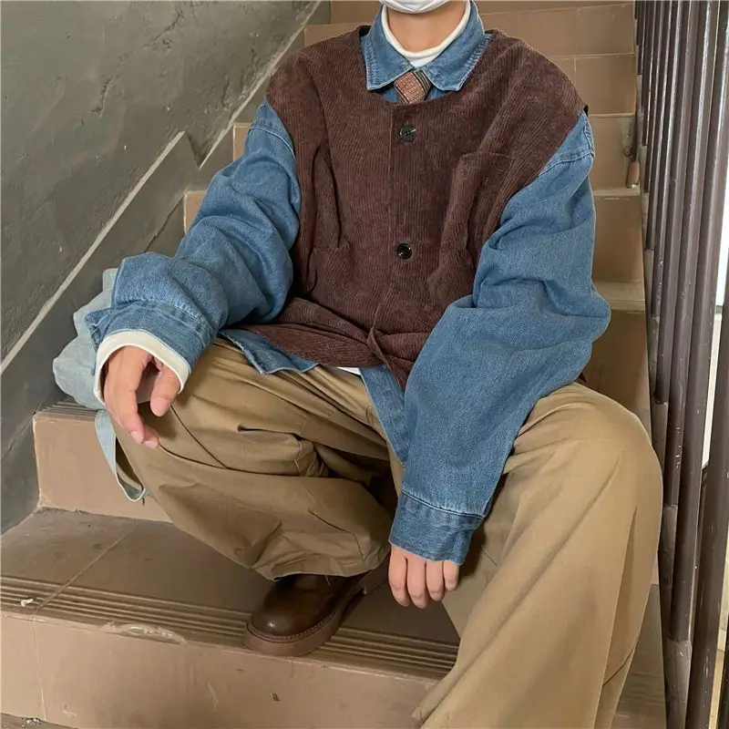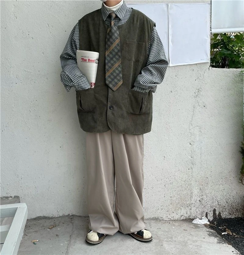 HEARUJOY - Spring Autumn Retro Japanese Corduroy Vest for Men Collarless Versatile Casual Jacket Trendy Layering Outerwear
