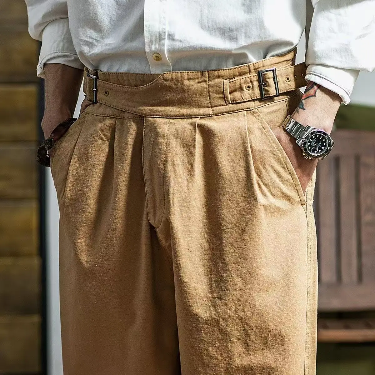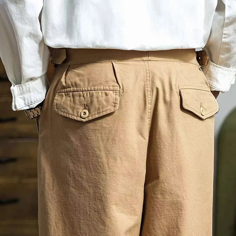 HEARUJOY - Spring Autumn Vintage Men's Gurkha Pants British Style Casual Straight Trousers Adjustable Waist Belt Naples Pant For Male