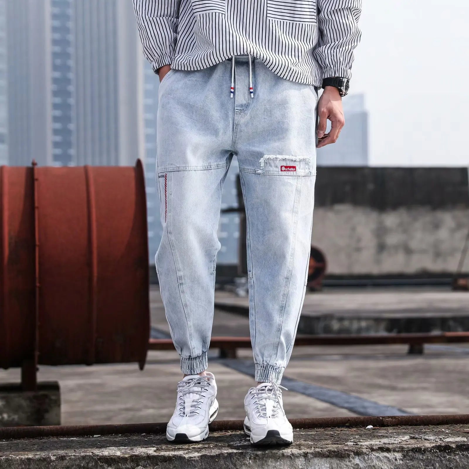 HEARUJOY - Spring Summer Black Blue Cargo Jeans Men Streetwear Denim Jogger Pants Men Baggy Harem Jean Trousers Ankle-Length Men Cloth