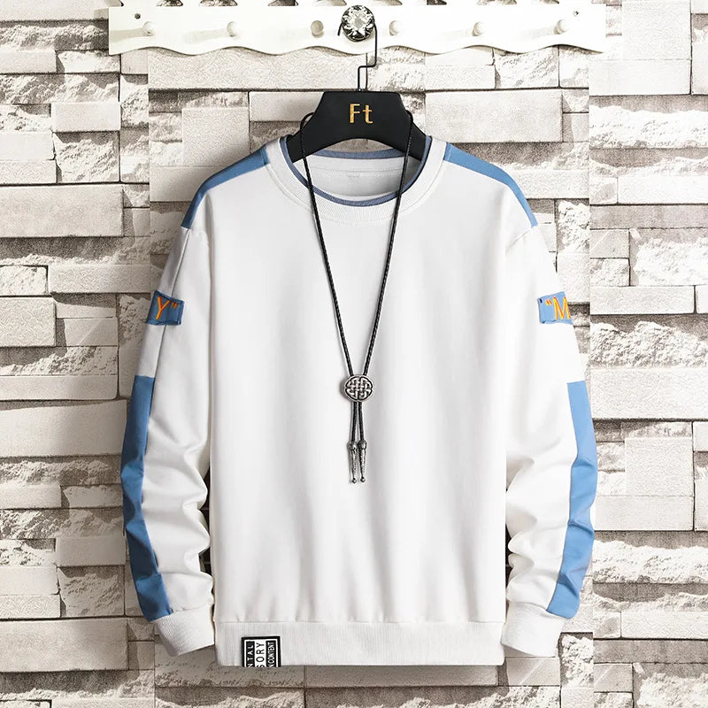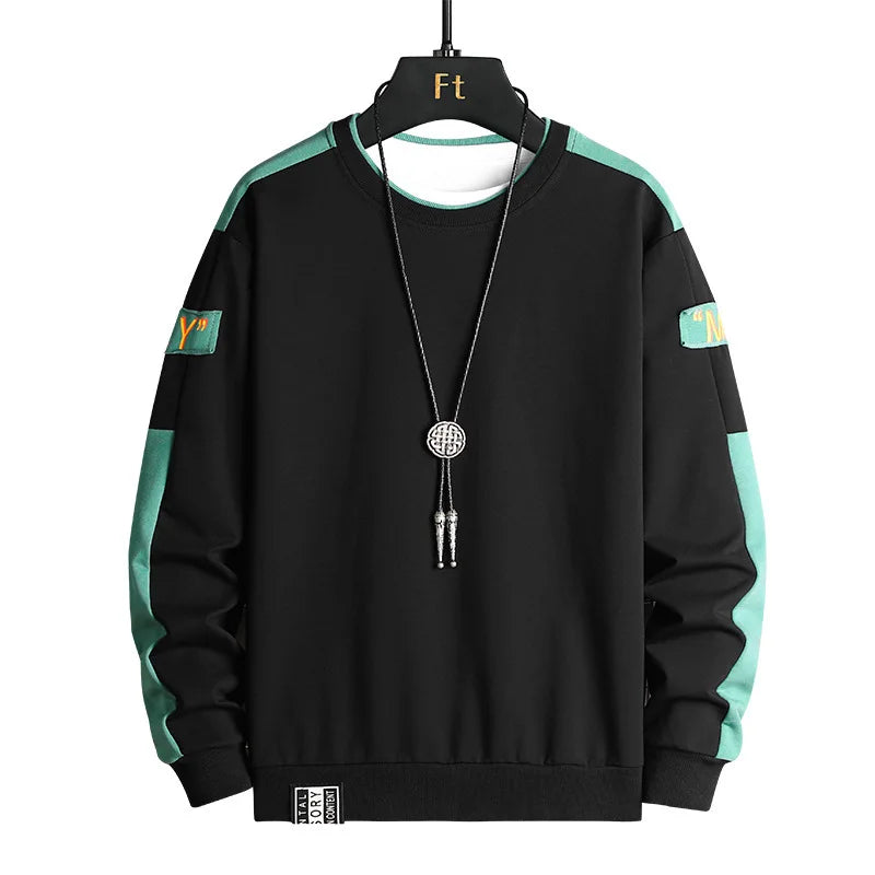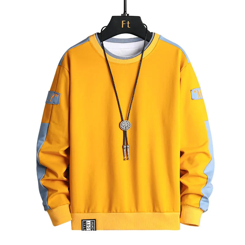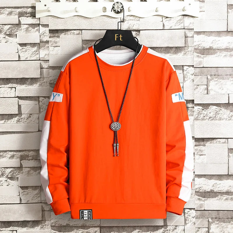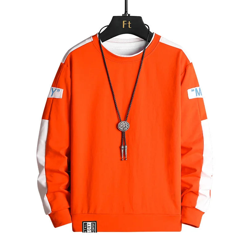 HEARUJOY - Spring utumn New Fashion Brand Men's Sweatshirt Trendy Color-Blocked Loose Round Neck Long Sleeve T-shirt Top Casual