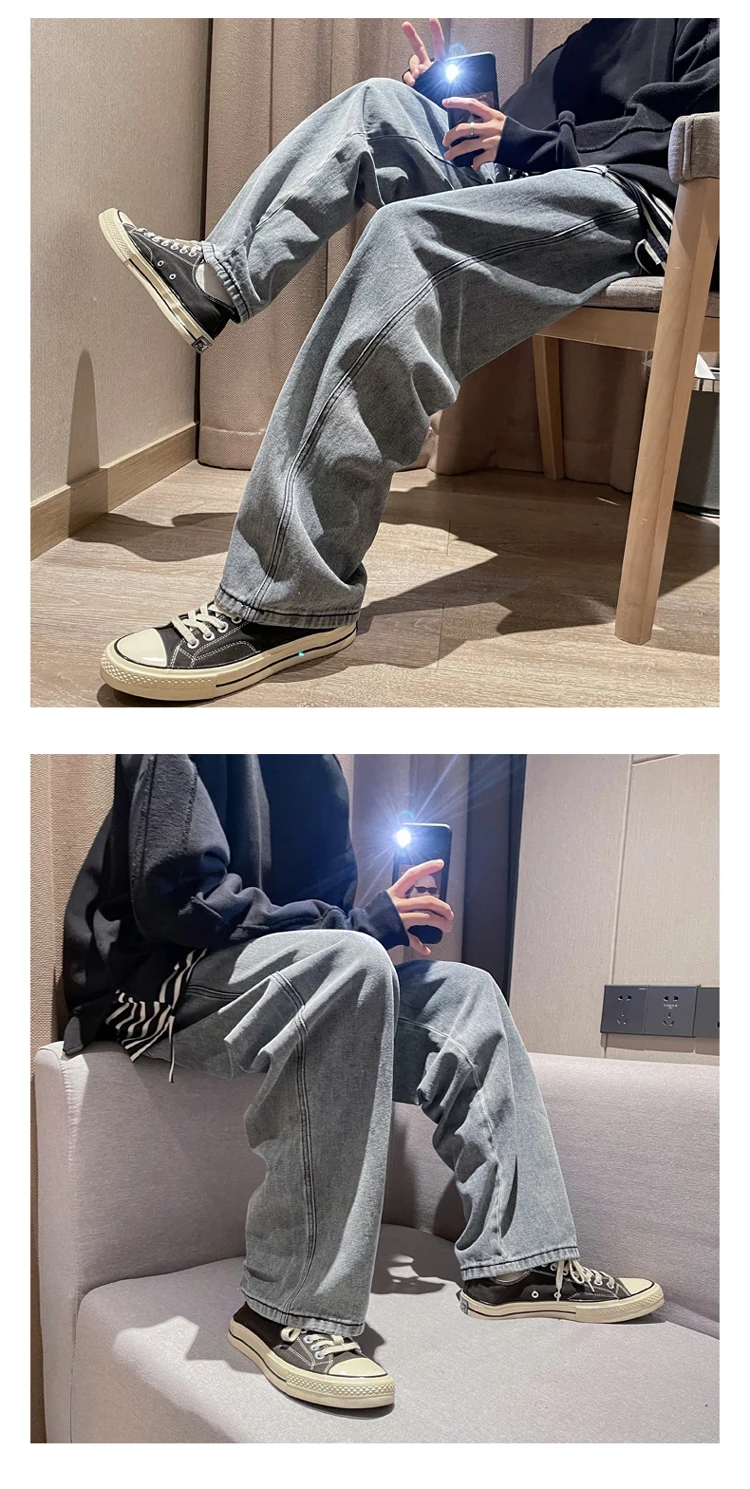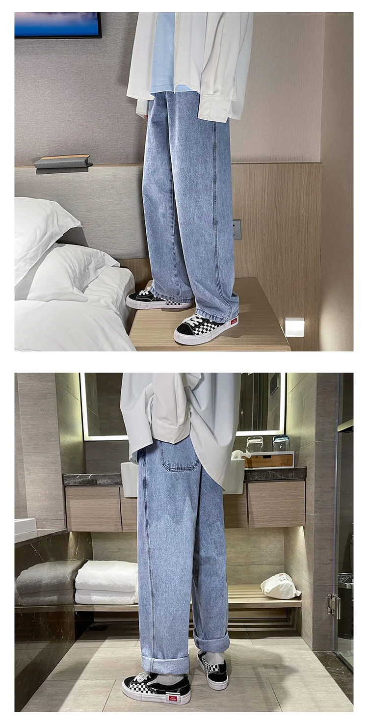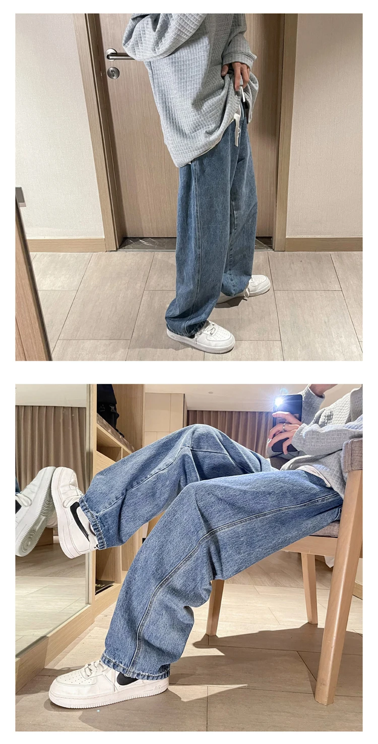 Hearujoy Straight Casual Jeans Men Simple Daily Streetwear Loose Trousers Mens Wide Leg Harem Pants Spring Autumn Korean Fashion Jeans