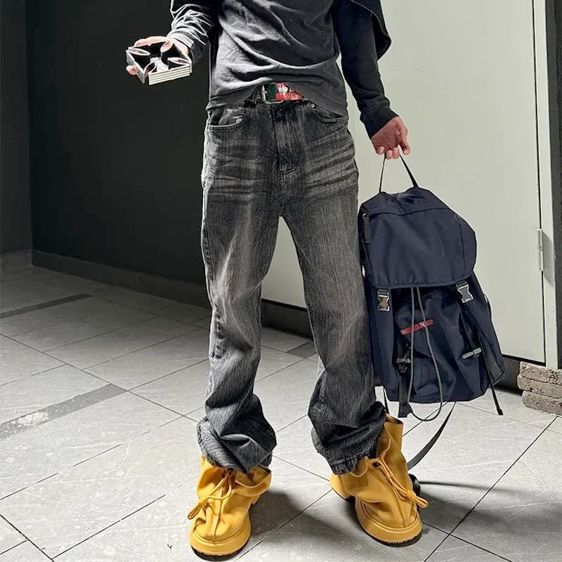 Hearujoy Streetwear Black Washed Ripped Baggy Flare Jeans Pants for Men and Women Straight Ropa Hombre Loose Casual Denim Trousers