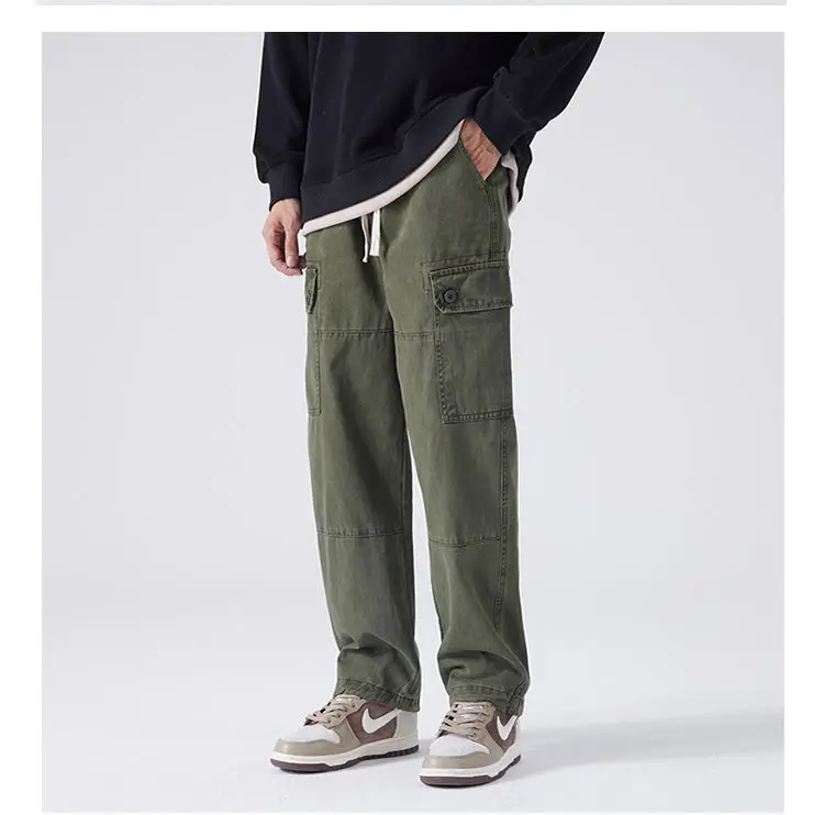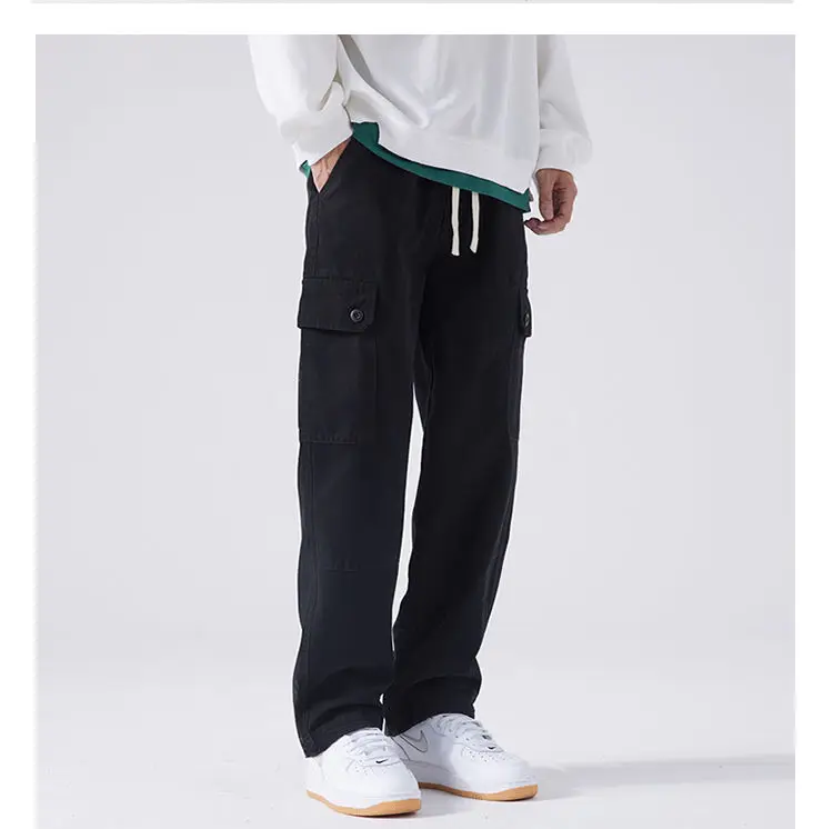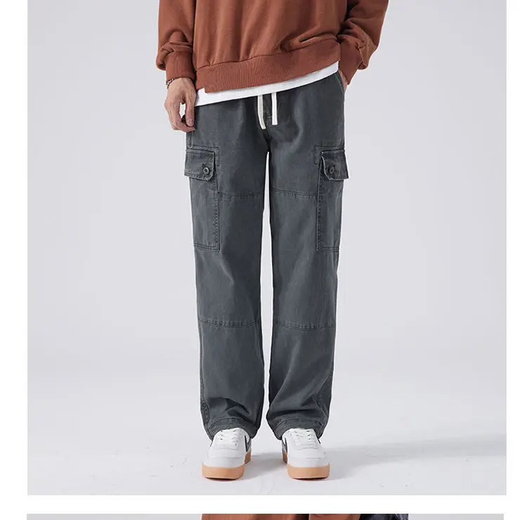 HEARUJOY - Streetwear Fashion Men Full Cargo Pants Spring Autumn Harajuku Vintage Oversize Solid Casual Male Loose Wide Leg Denim Trousers
