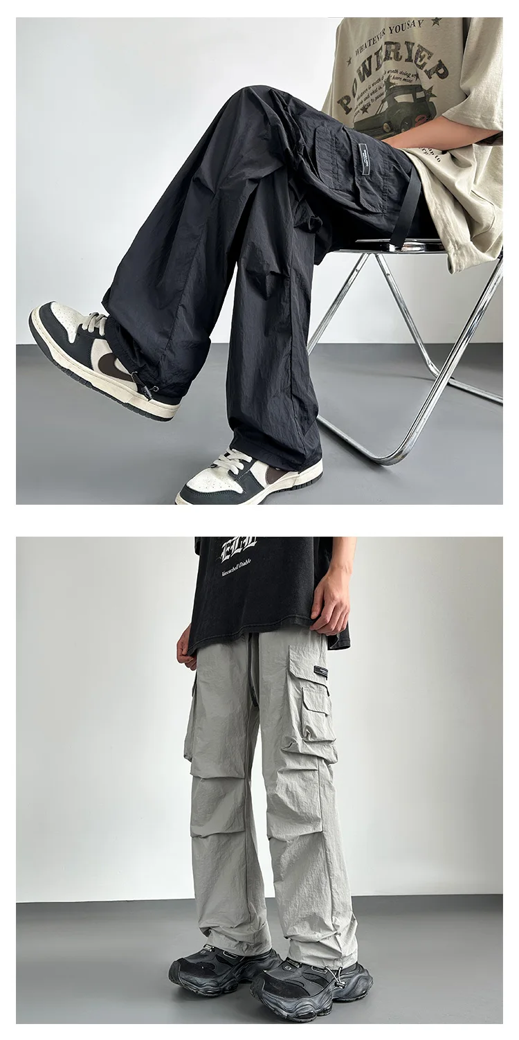 HEARUJOY - Streetwear Spring Summer Casual Men Trousers Solid Color Harajuku Lightweight Cargo Pants Fashion Straight Men's Pants
