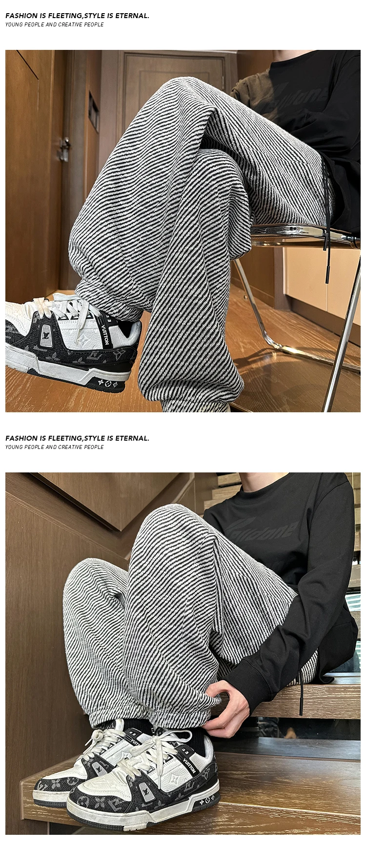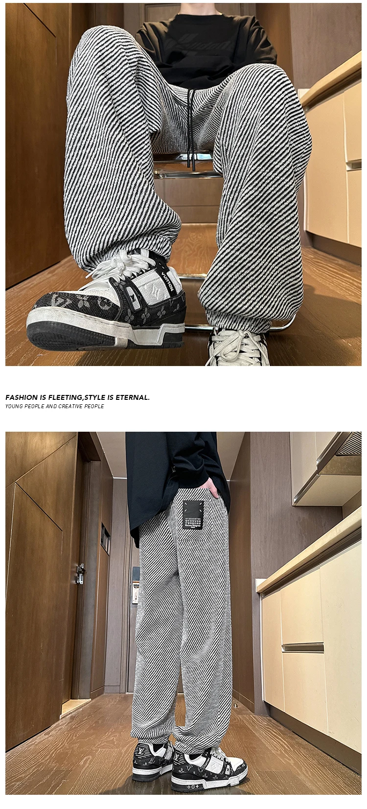 Hearujoy Streetwear Striped Sweatpants Men 2024 Spring New Casual Straight Harem Pants Men Korean Hip Hop Track Pants Plus Size 5XL-M