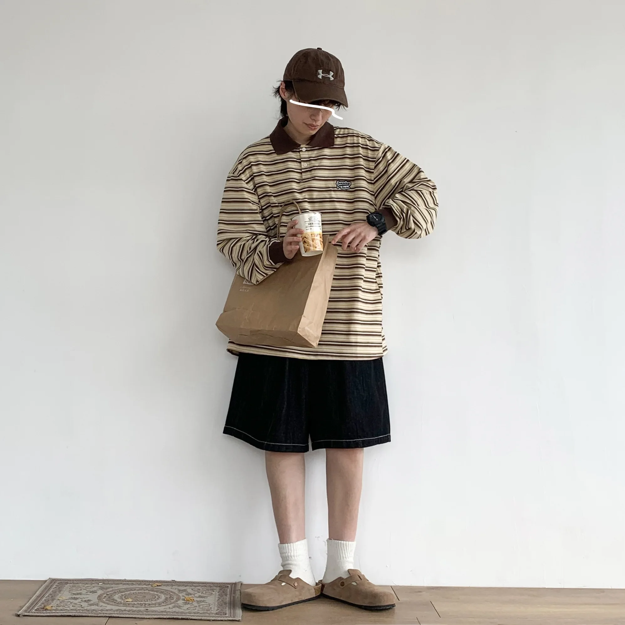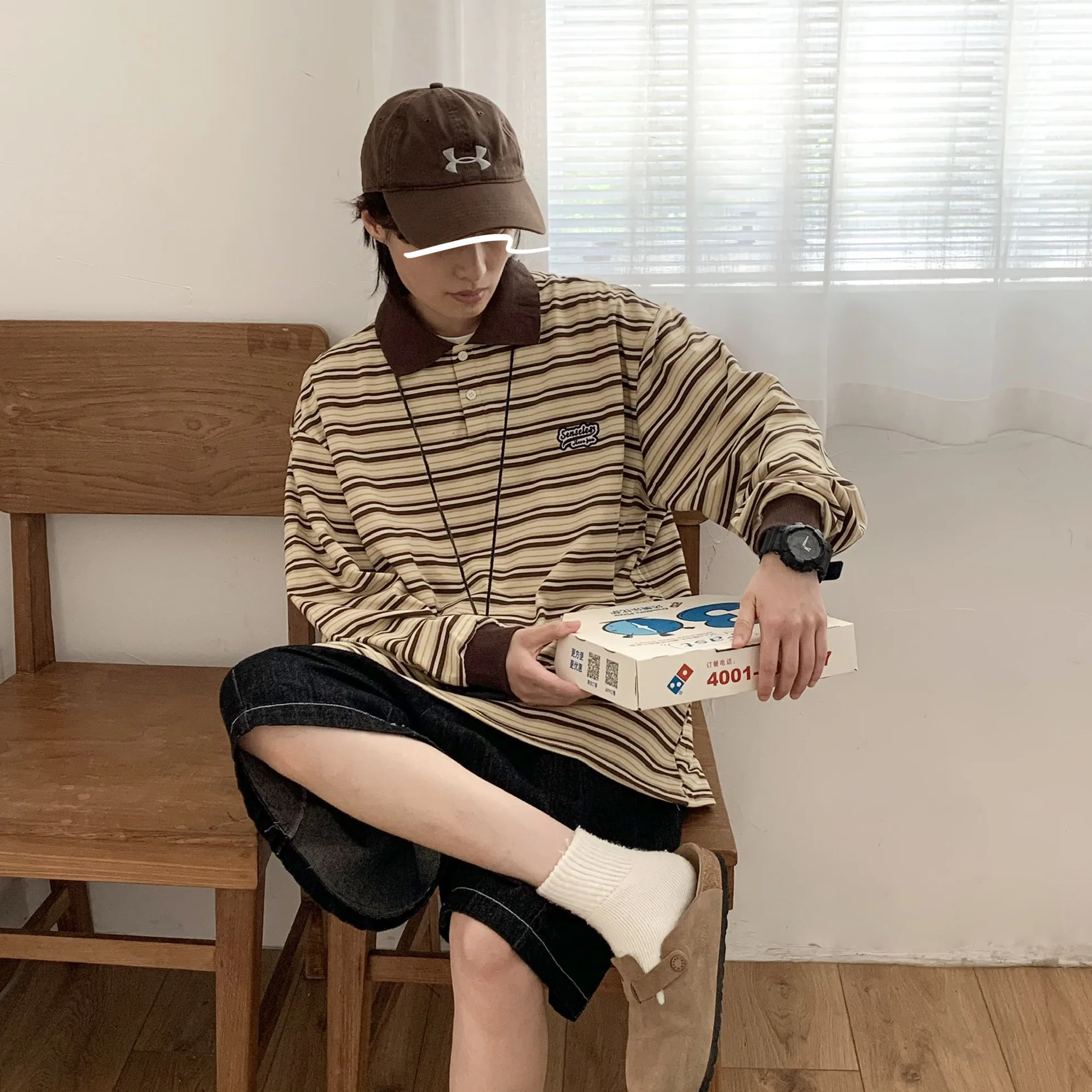 Hearujoy Striped Long-Sleeved Shirt New Spring Autumn Vintage Blouse Student Korean Preppy Sweatshirt Men Women Lapel Shirt