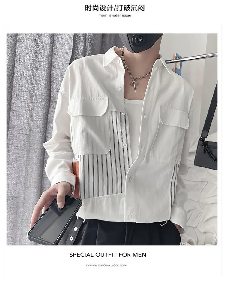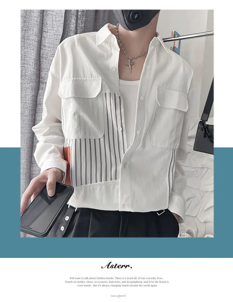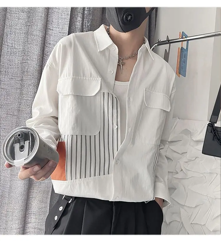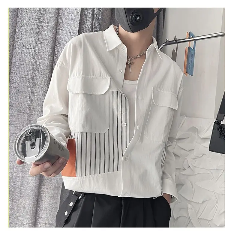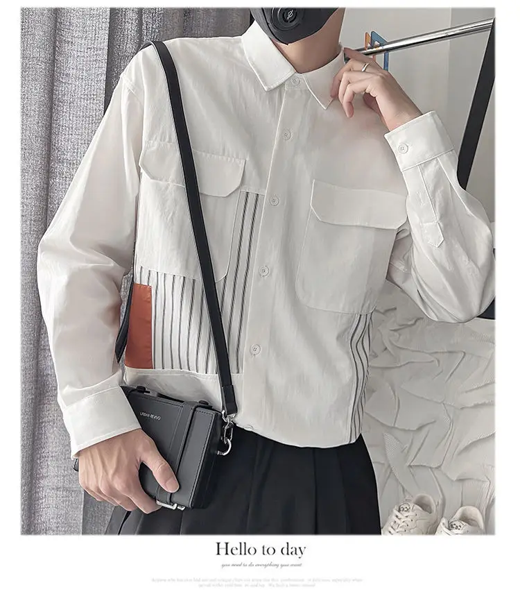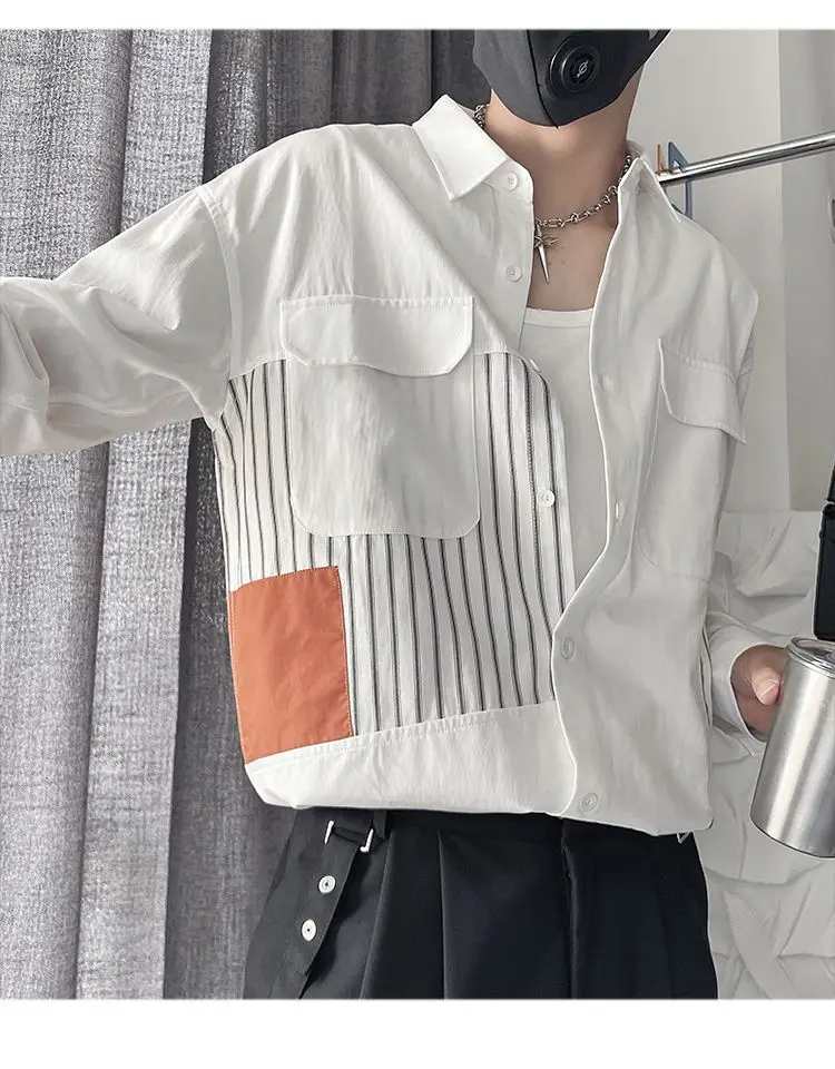Hearujoy Striped Patchwork Handsome Shirt Men's New Fashionable Casual Long Sleeved Shirt Trendy Thin Top