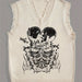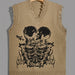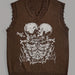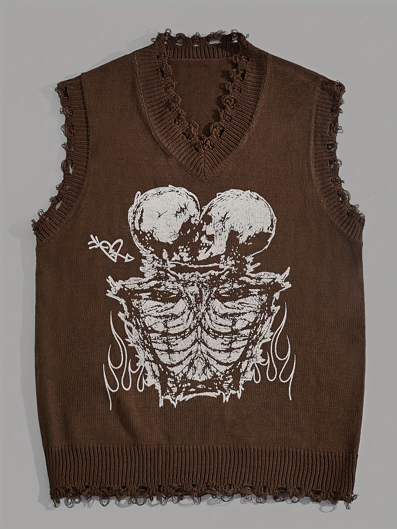Hearujoy Stylish Men's Brown Knit Sweater Vest with Skull Print - Casual V-Neck, Sleeveless Pullover with Raw Hem Detail, Perfect for Summer