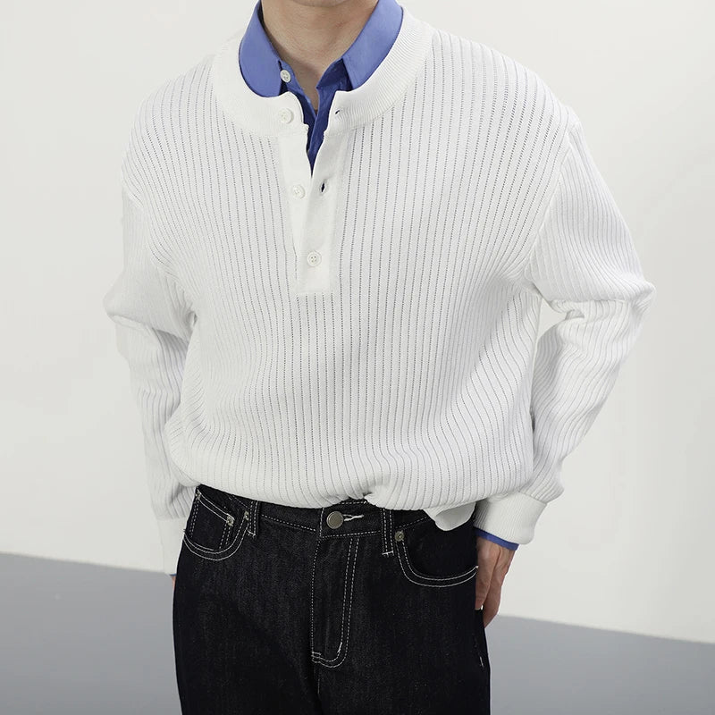 HEARUJOY - Stylish Men's Knitting Pullover Tops Autumn Daily Casual Long Sleeve O Neck Button Sweaters For Men Fashion Solid Color Sweater
