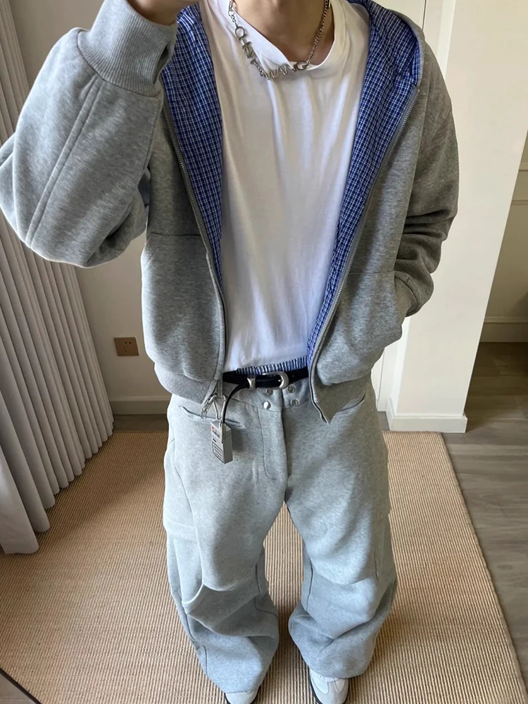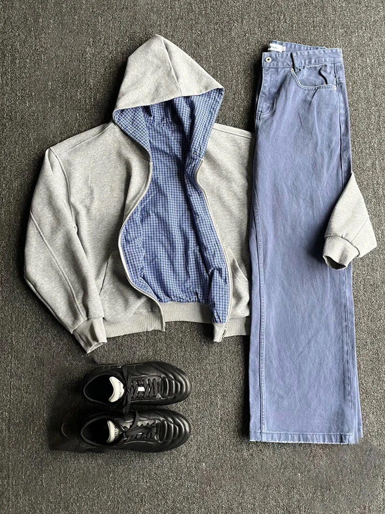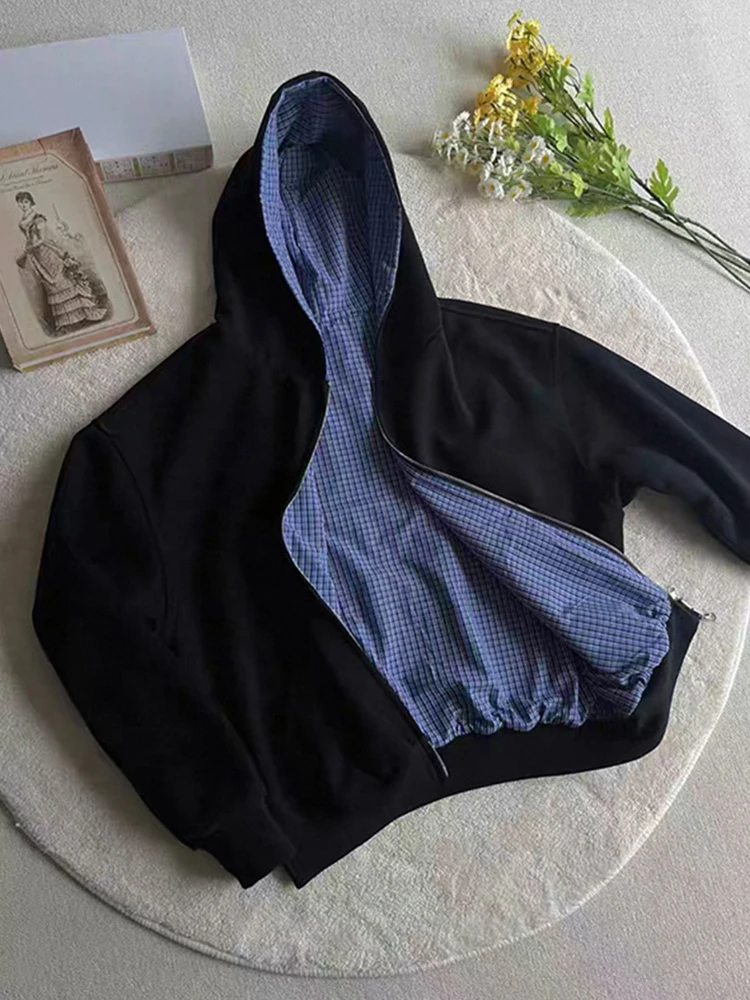 HEARUJOY - Stylish Plaid Printing Hooded Sweatshirts Men Spring Autumn Outdoor Fashion Zip-up Hoodie Jackets Mens Streetwear Y2K Cardigans