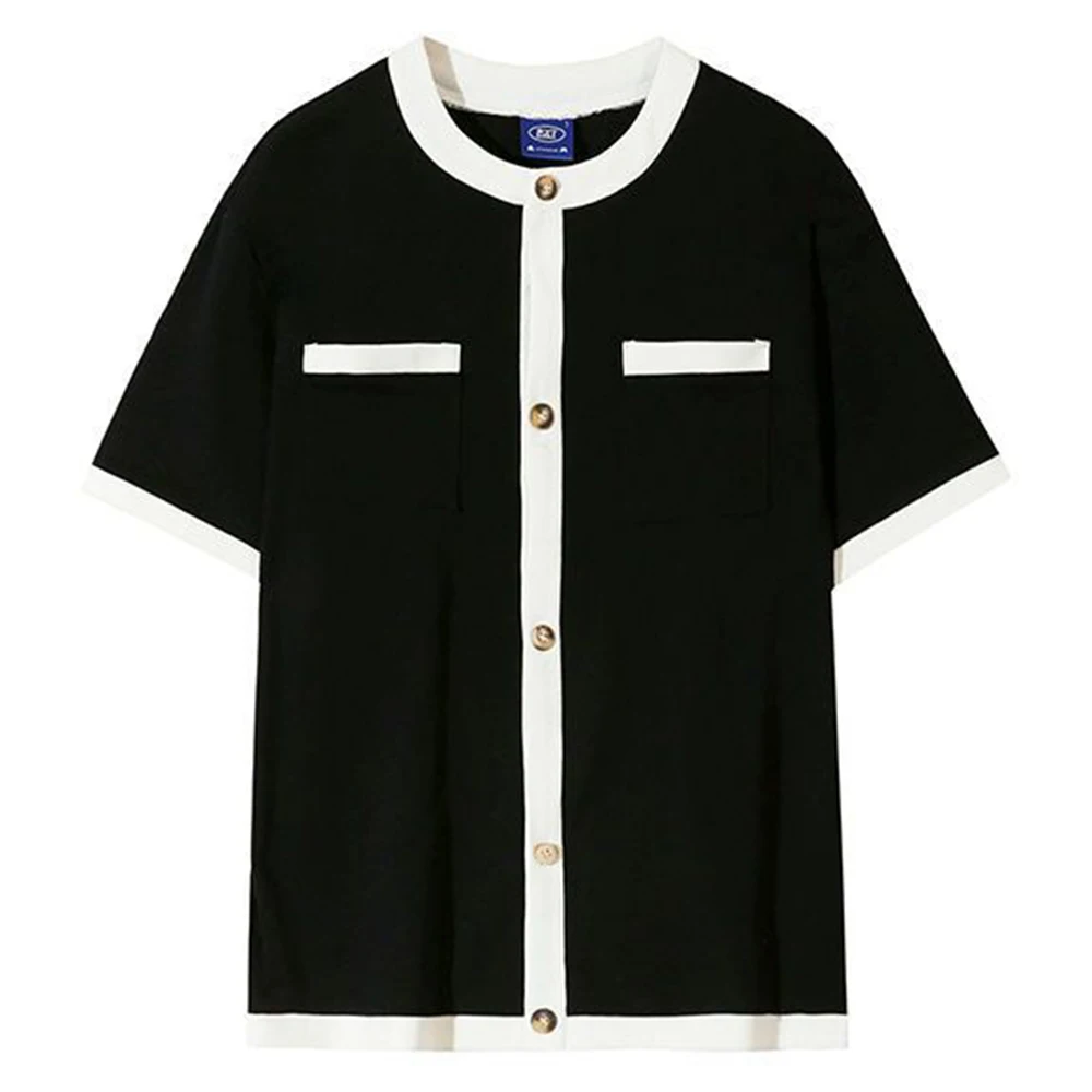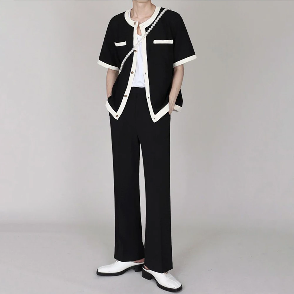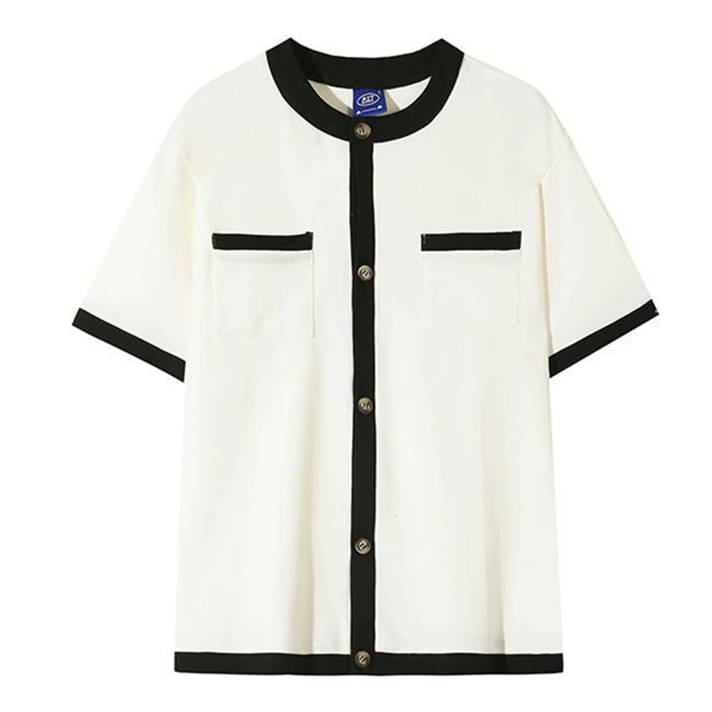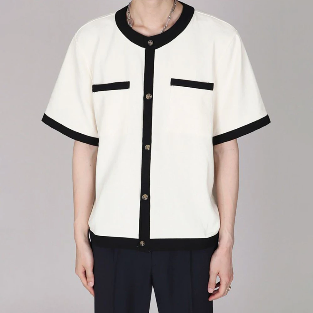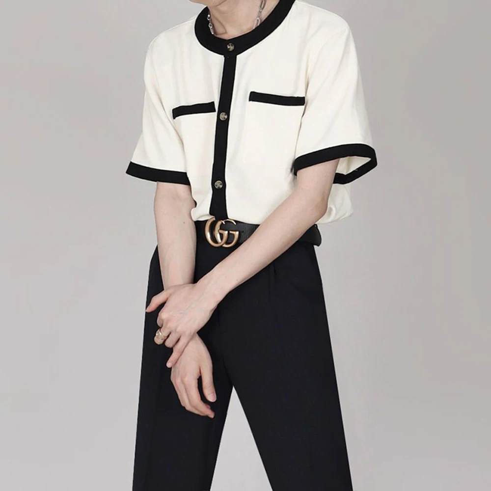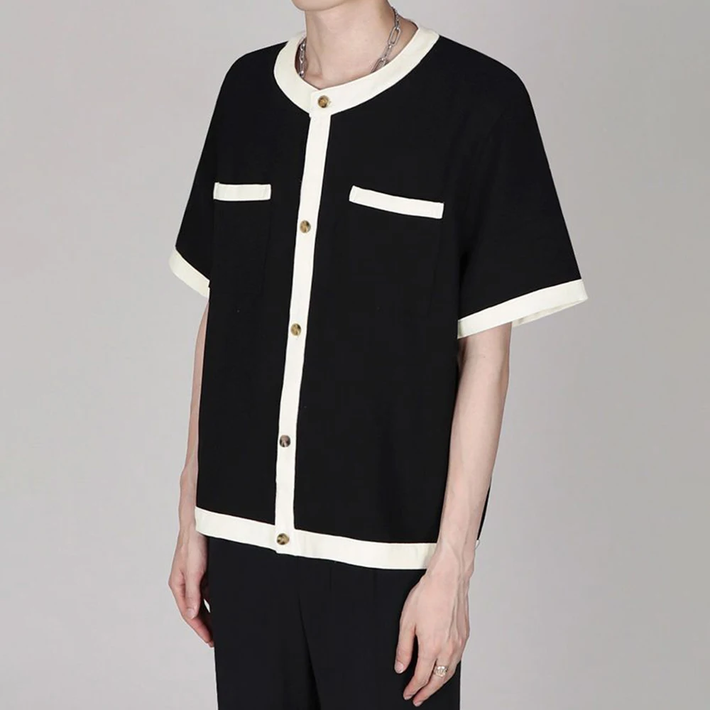 Hearujoy Stylish Well Fitting New Men Tops Splicing Comfortable Blouse Casual Simple Mid Sleeve Button Shirts Korean Short Sleeve Unisex