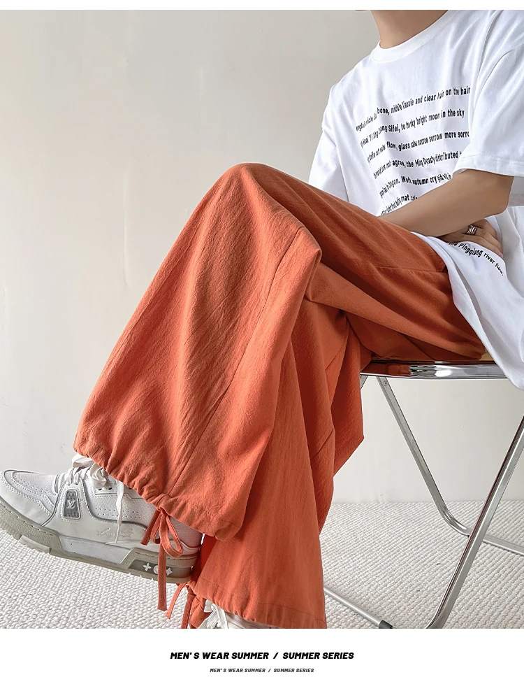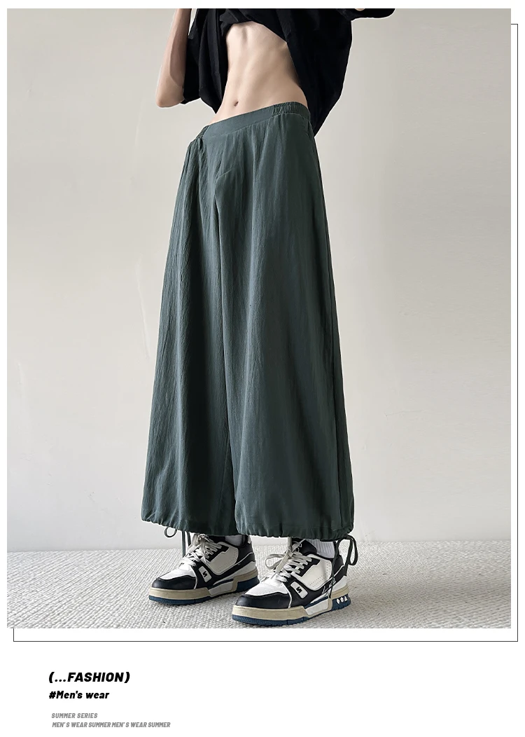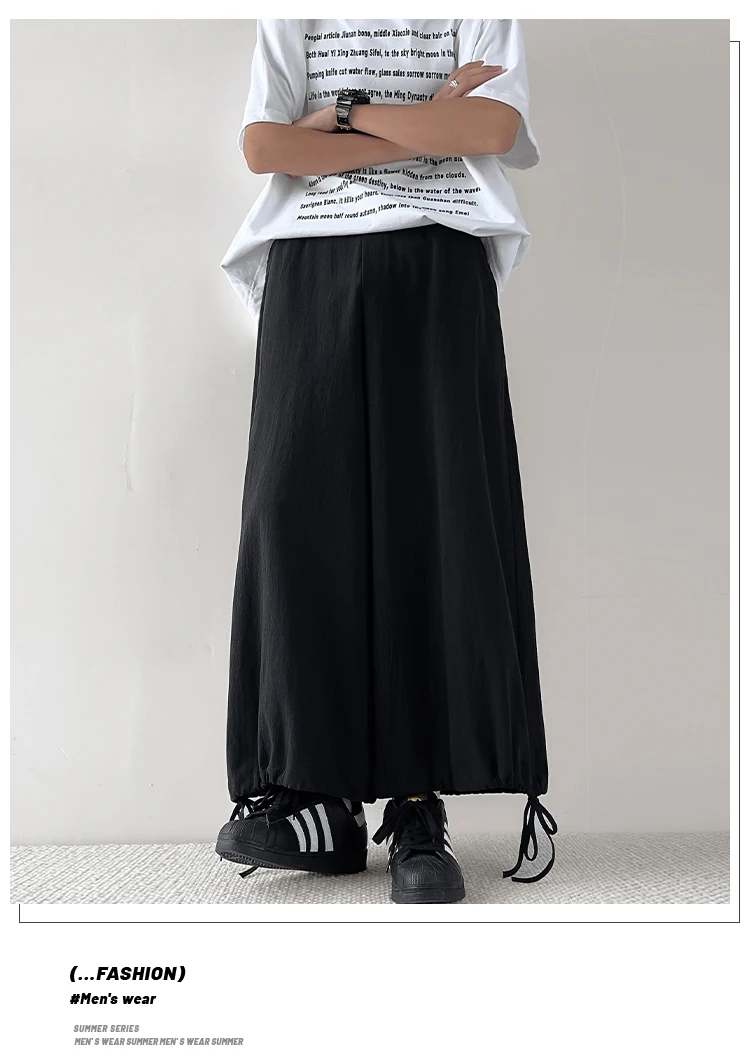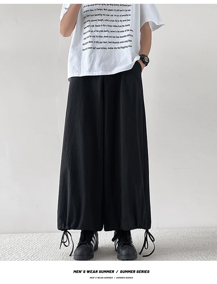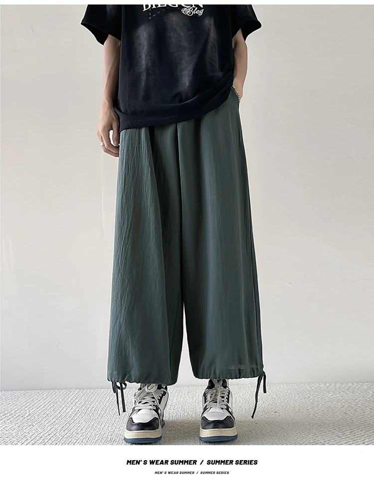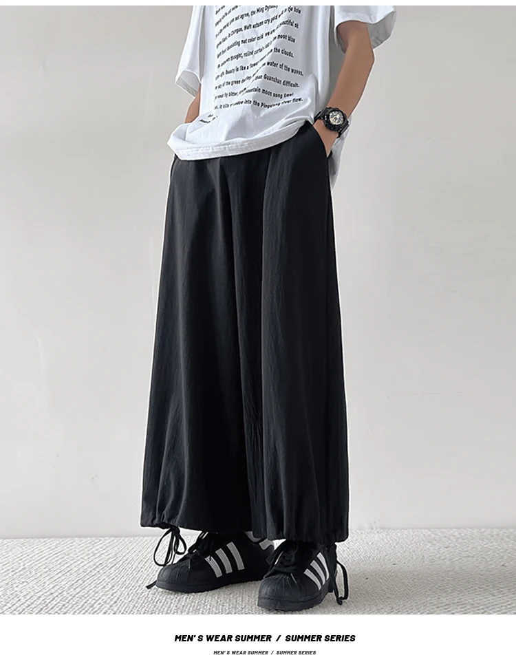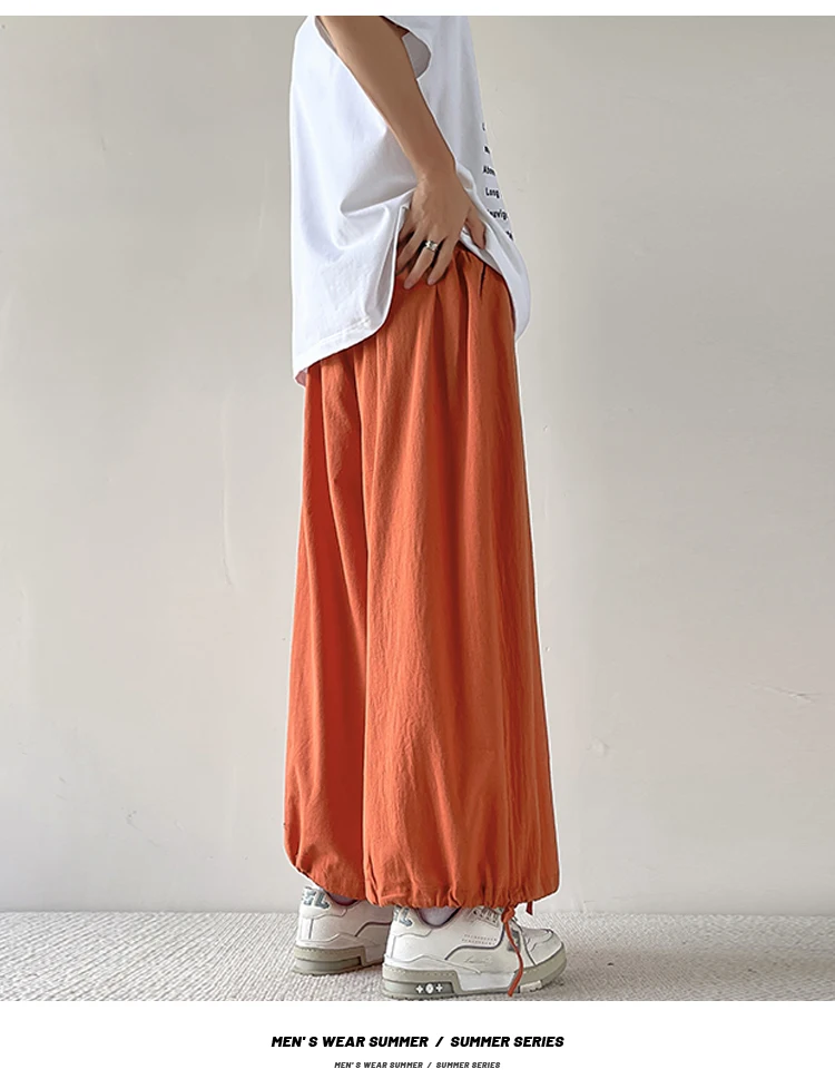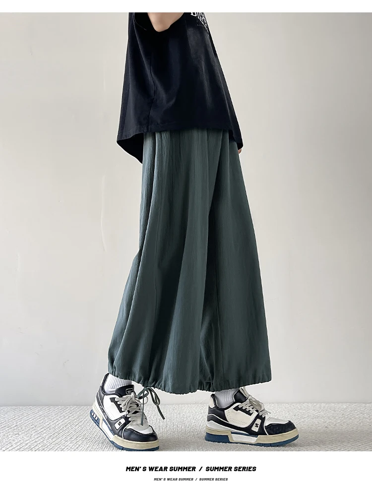 Hearujoy Summer Casual Pants Men Fashion Oversized Wide Leg Pants Men Japanese Streetwear Hip-hop Loose Straight Pants Mens Trousers