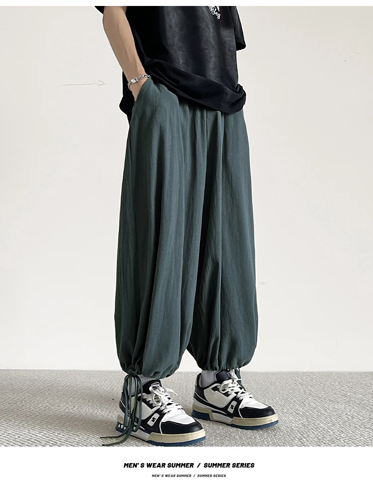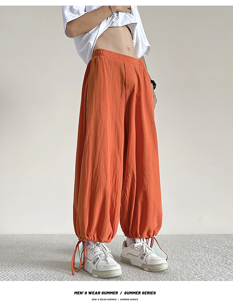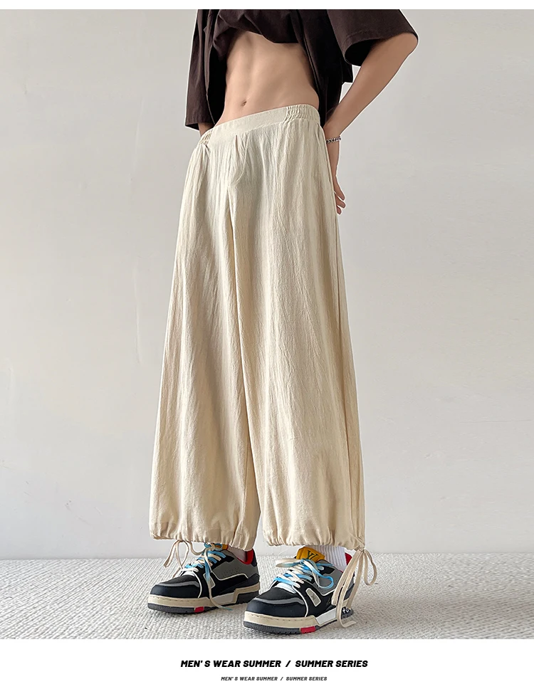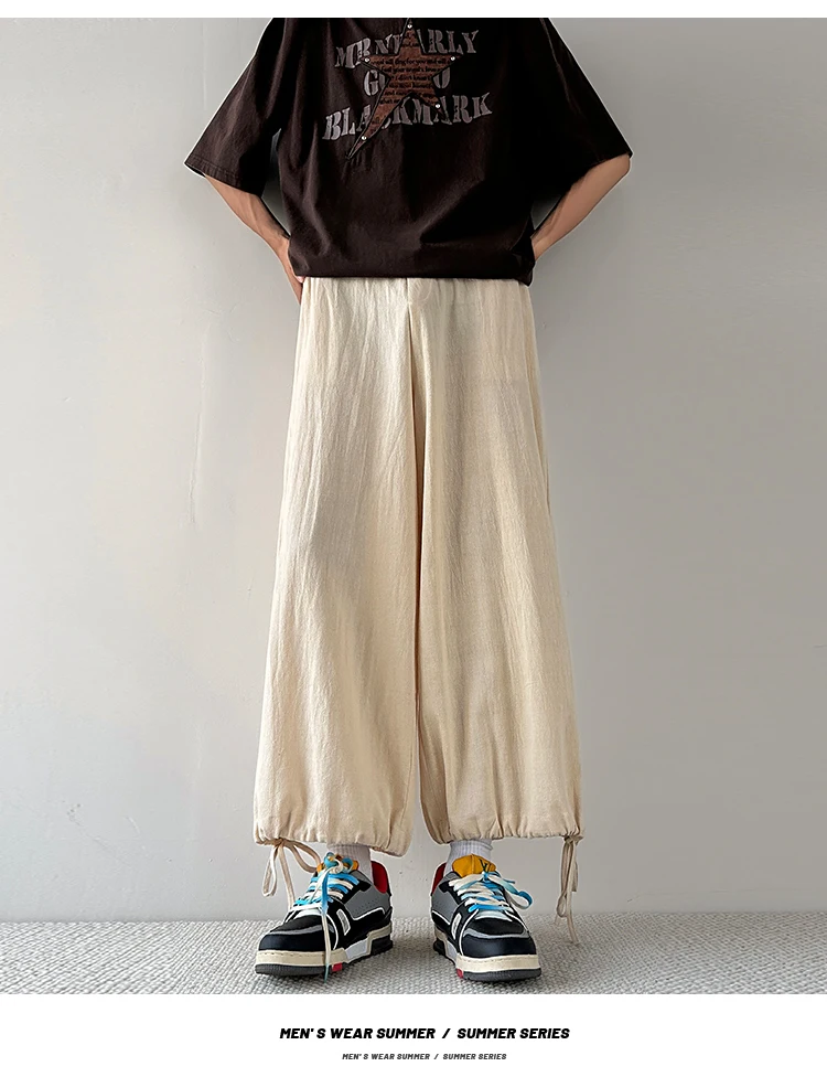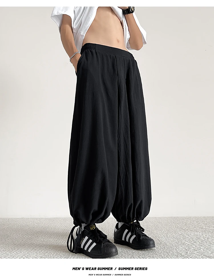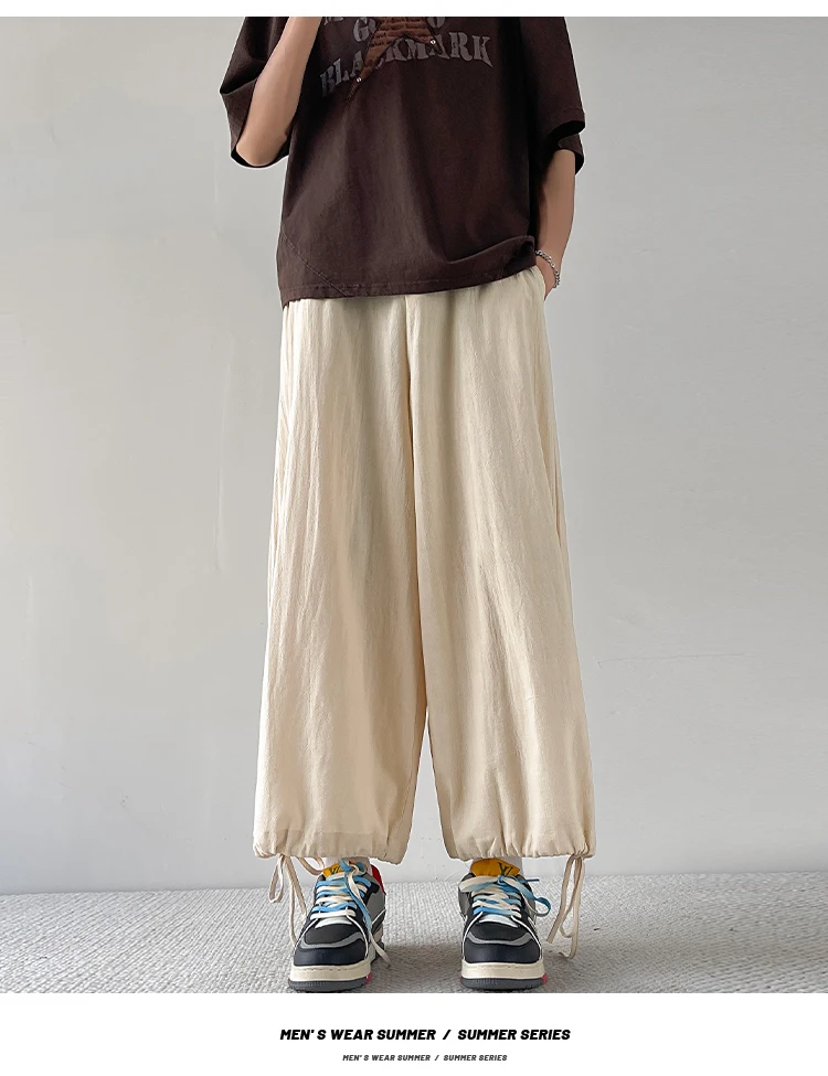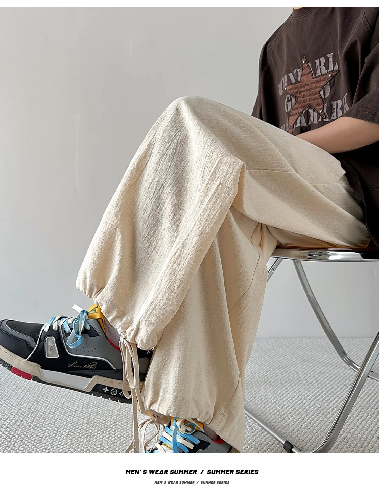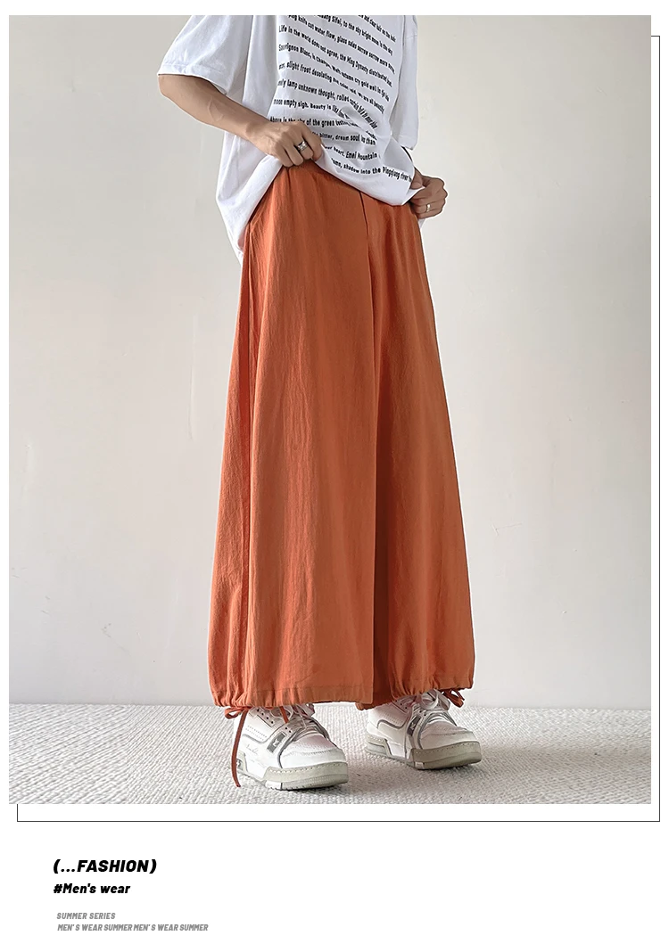 Hearujoy Summer Casual Pants Men Fashion Oversized Wide Leg Pants Men Japanese Streetwear Hip-hop Loose Straight Pants Mens Trousers