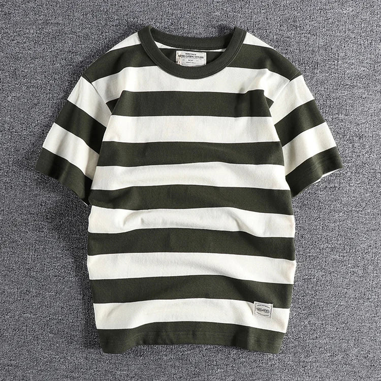 HEARUJOY - Summer Casual Stripe Short Sleeve T Shirt Streetwear American Styles Heavyweight Men's Cotton Loose Half Sleeve Tops Tee