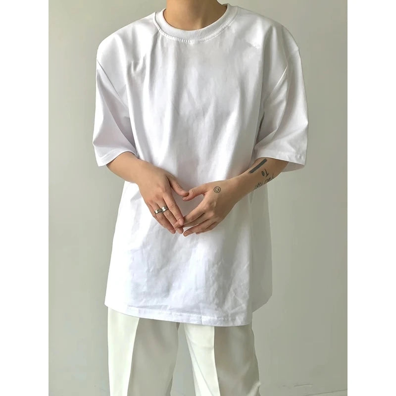 HEARUJOY - Summer Cotton Short Sleeved T-shirt Men Black White Casual T Shirt Men Streetwear Korean Loose Shoulder Pad T Shirt Mens Top