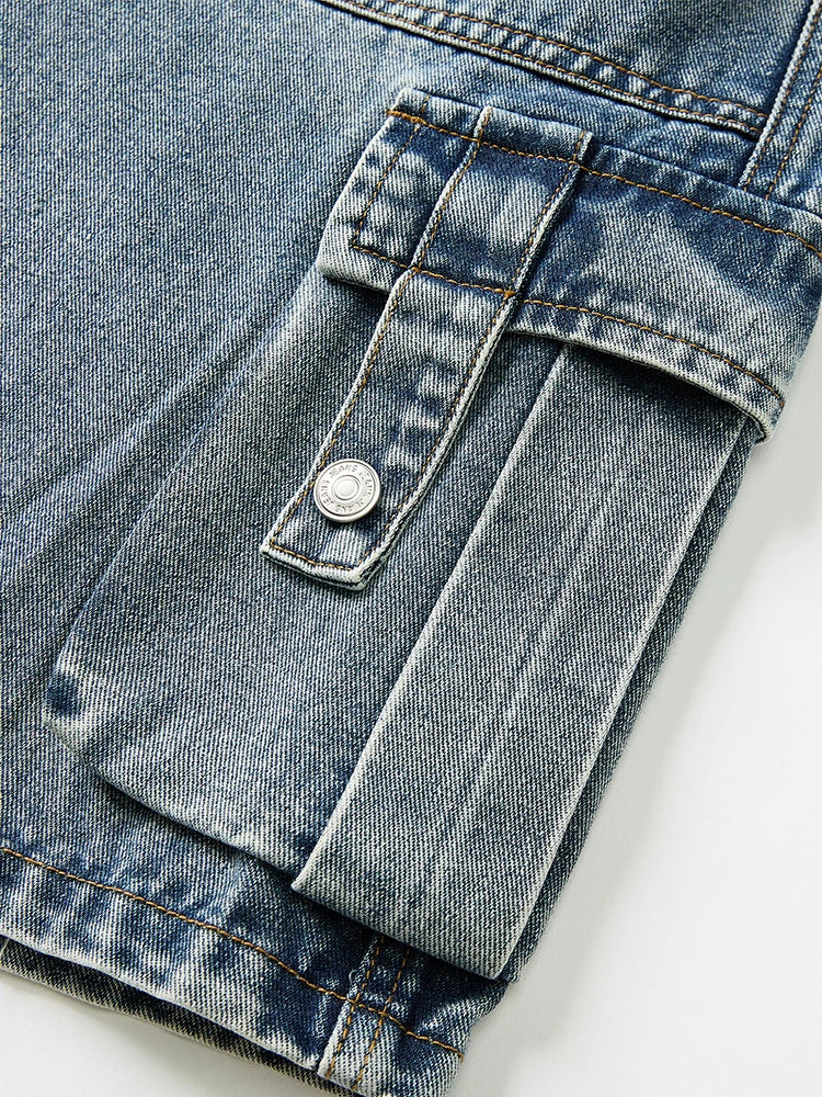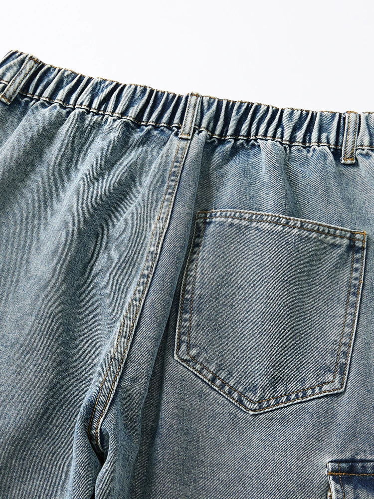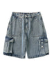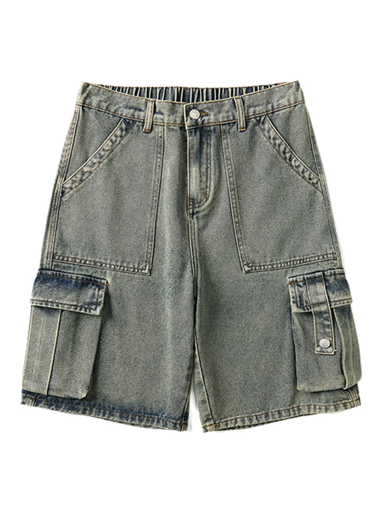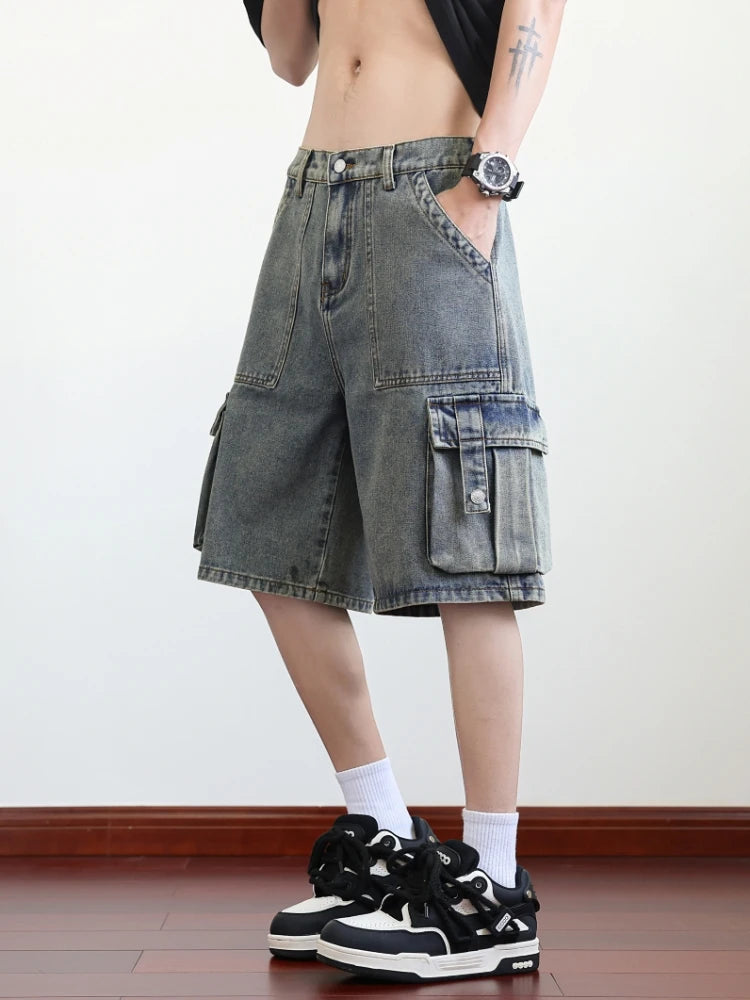 HEARUJOY - Summer Denim Cargo Shorts Men Flap Pockets Wide Leg Baggy Jeans Shorts Big Size 8XL 7XL 6XL Loose Fit Straight Jean Short Male