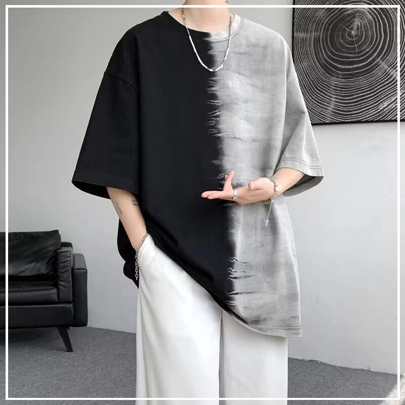 HEARUJOY - Summer Gradient Color Casual Loose American Style Trend Creative Splicing Handsome Chaopai Heavyweight Men's Clothing Tees