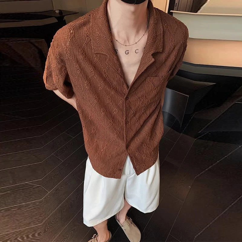 HEARUJOY - Summer Men's Clothing Light Luxury Jacquarded Suit Collar Shirts Streetwear Button-down Short Sleeve Retro Leisure Fashion M-3XL