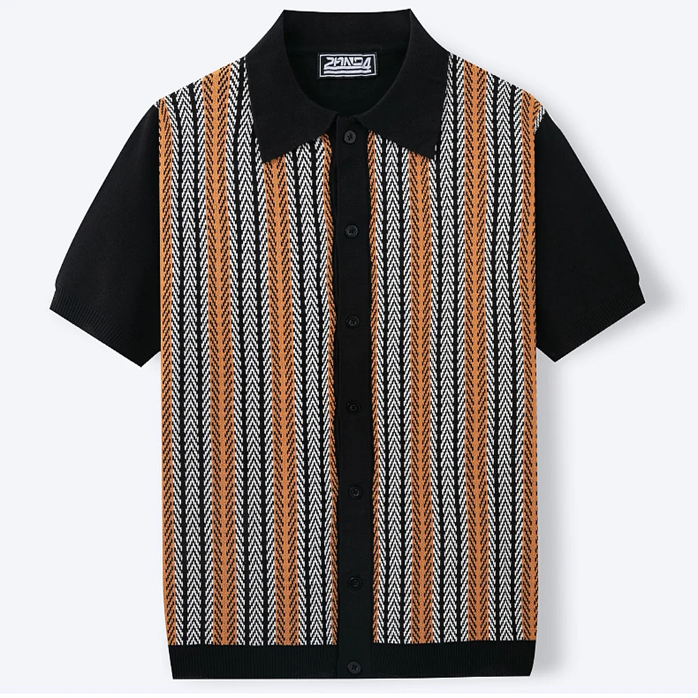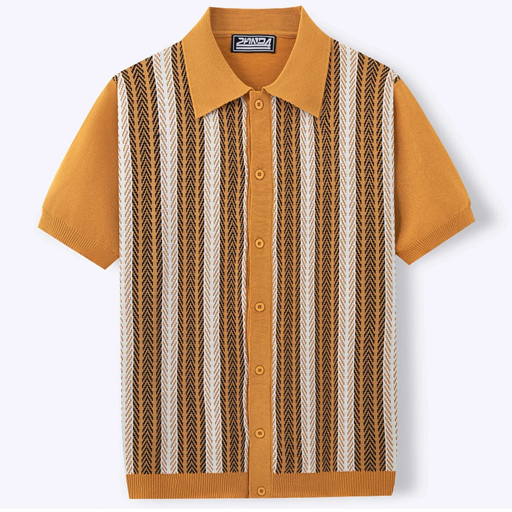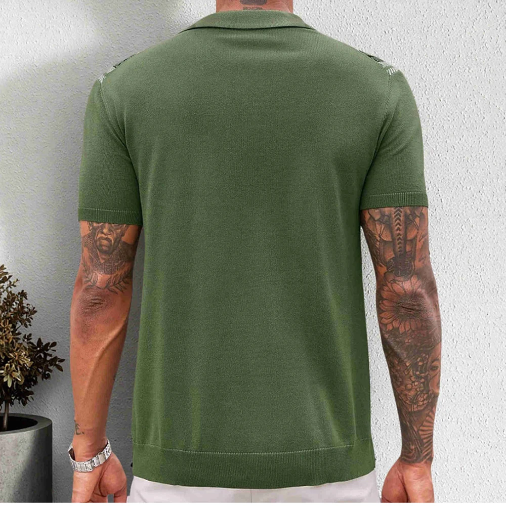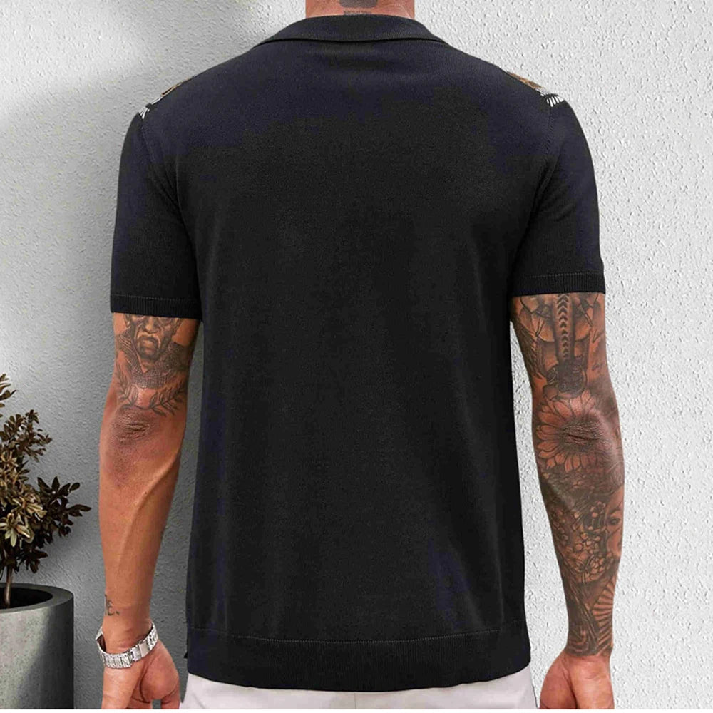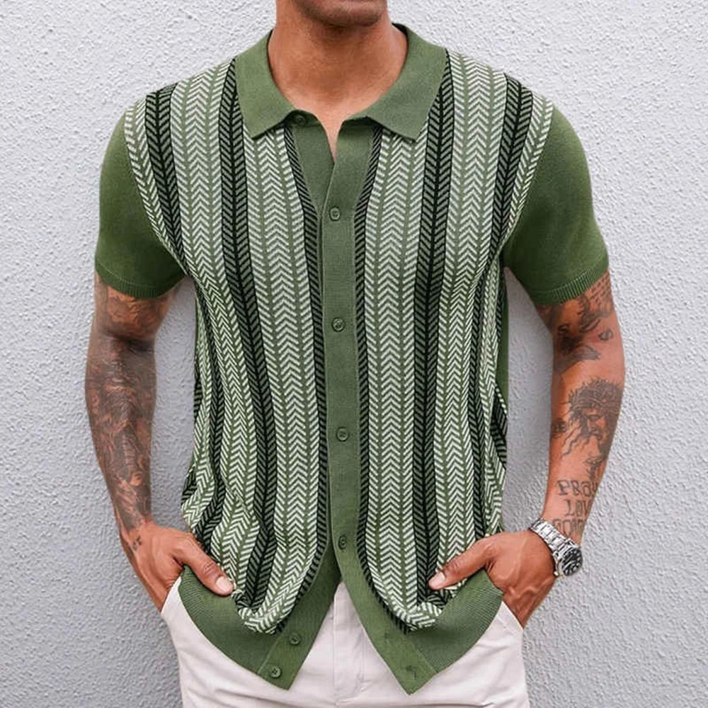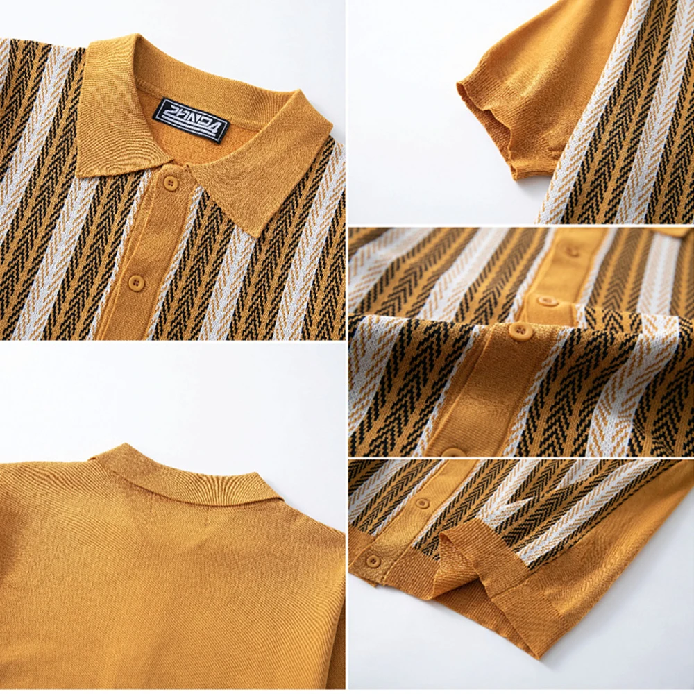 HEARUJOY - Summer Men's Color Matching Striped Jacquard Knitted Short-Sleeved Shirt Casual Fashion Trend Loose Breathable Daily Men's Tops