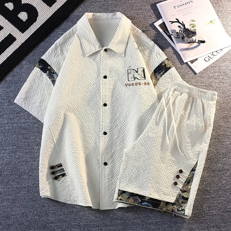 HEARUJOY - Summer Men's Set Casual Short Sleeve Print Shirt Shorts 2 Piece Suit Loose Fashion High Quality Sweatshirt Sets